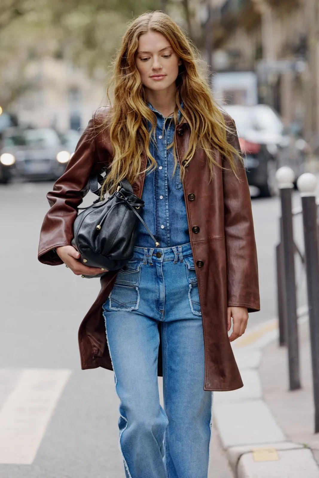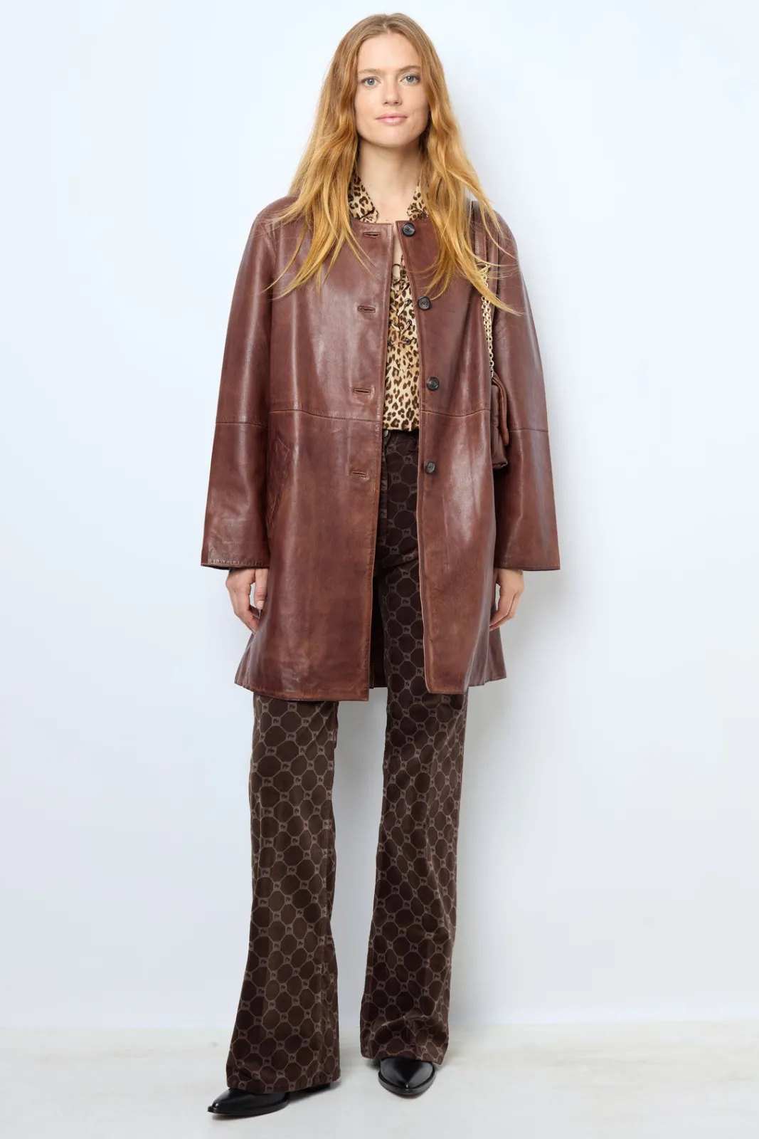 Distressed gloss lambskin coat for a minimalist feel.-Straight cut-Plain leather-Long jacket-Fastened with four buttons-…