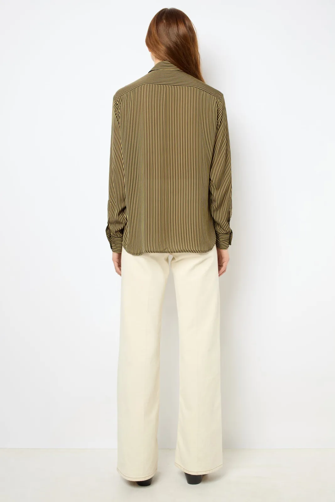 Shirt with contrasting beige and black stripes. Soft, silky feel.
