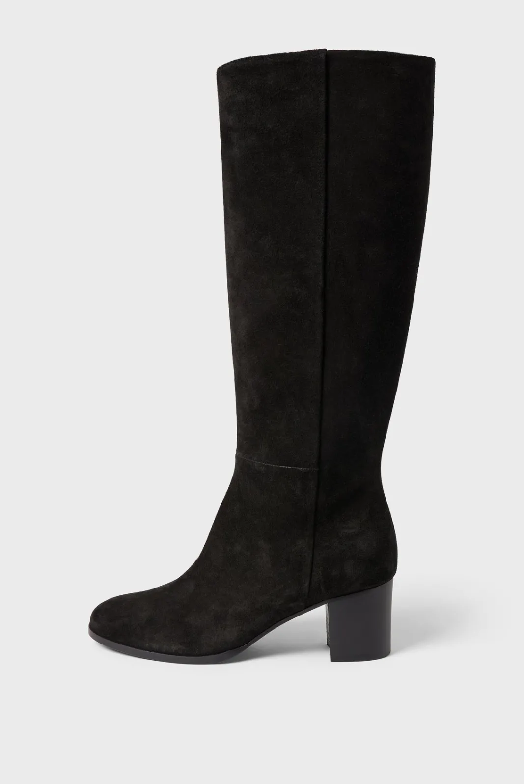 Heeled boots in soft suede.Smooth leather inside.-Round toe-Plain smooth leather-Side zipper-Wood-effect square heel-Hei…