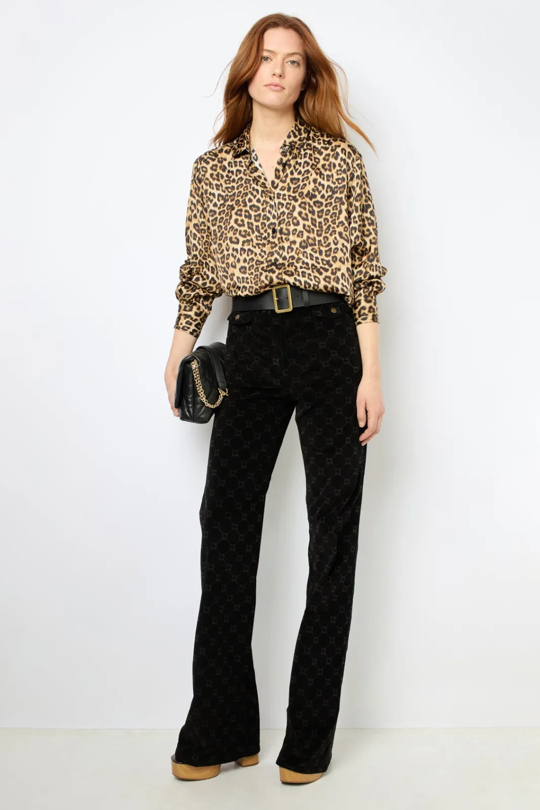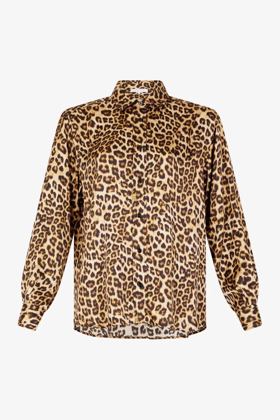 Satin shirt with leopard print.-Straight cut-Leopard print-Classic armhole-Buttoned shirt collar-Long sleeves-Sleeves fa…