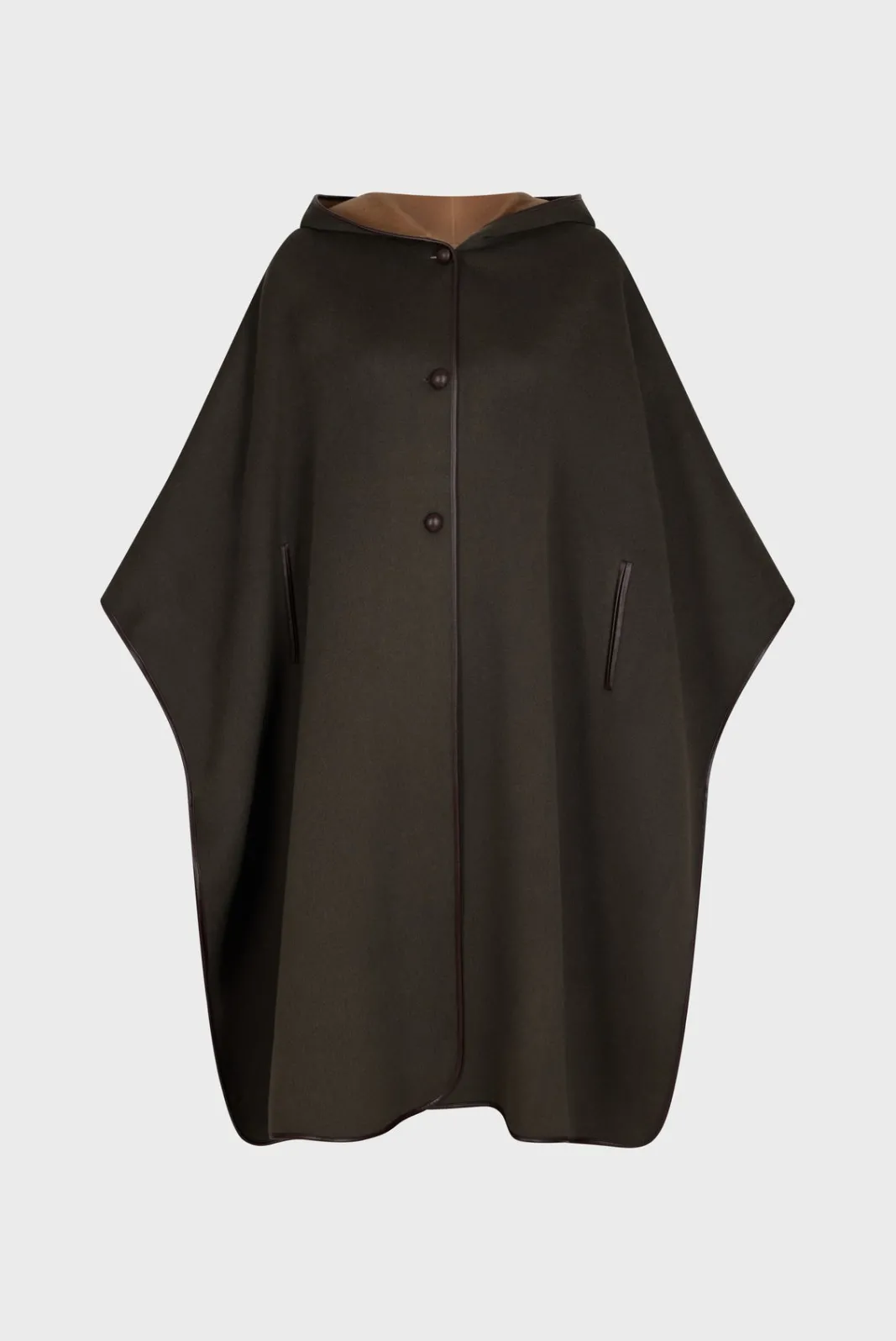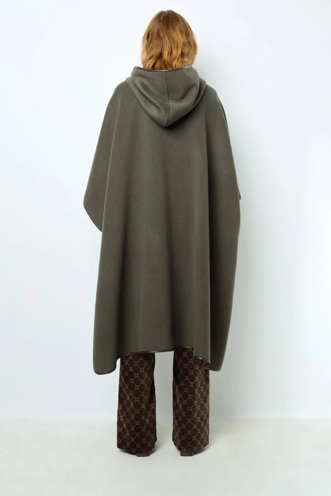100% Double-faced wool cape, providing both comfort and warmth. Loose and flowing for a chic but casual look. With a hood for a modern touch and better protection from the cold.