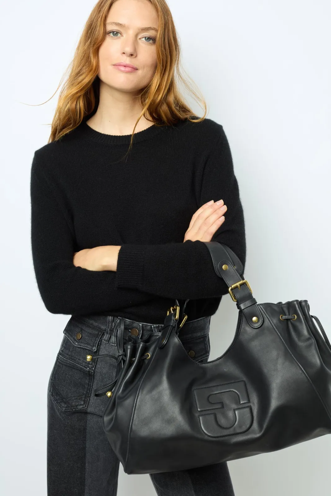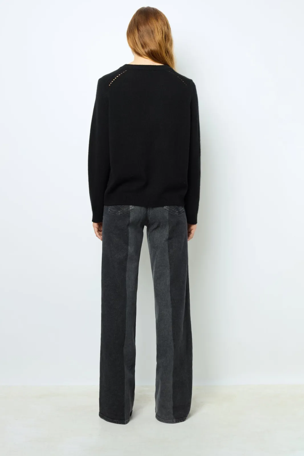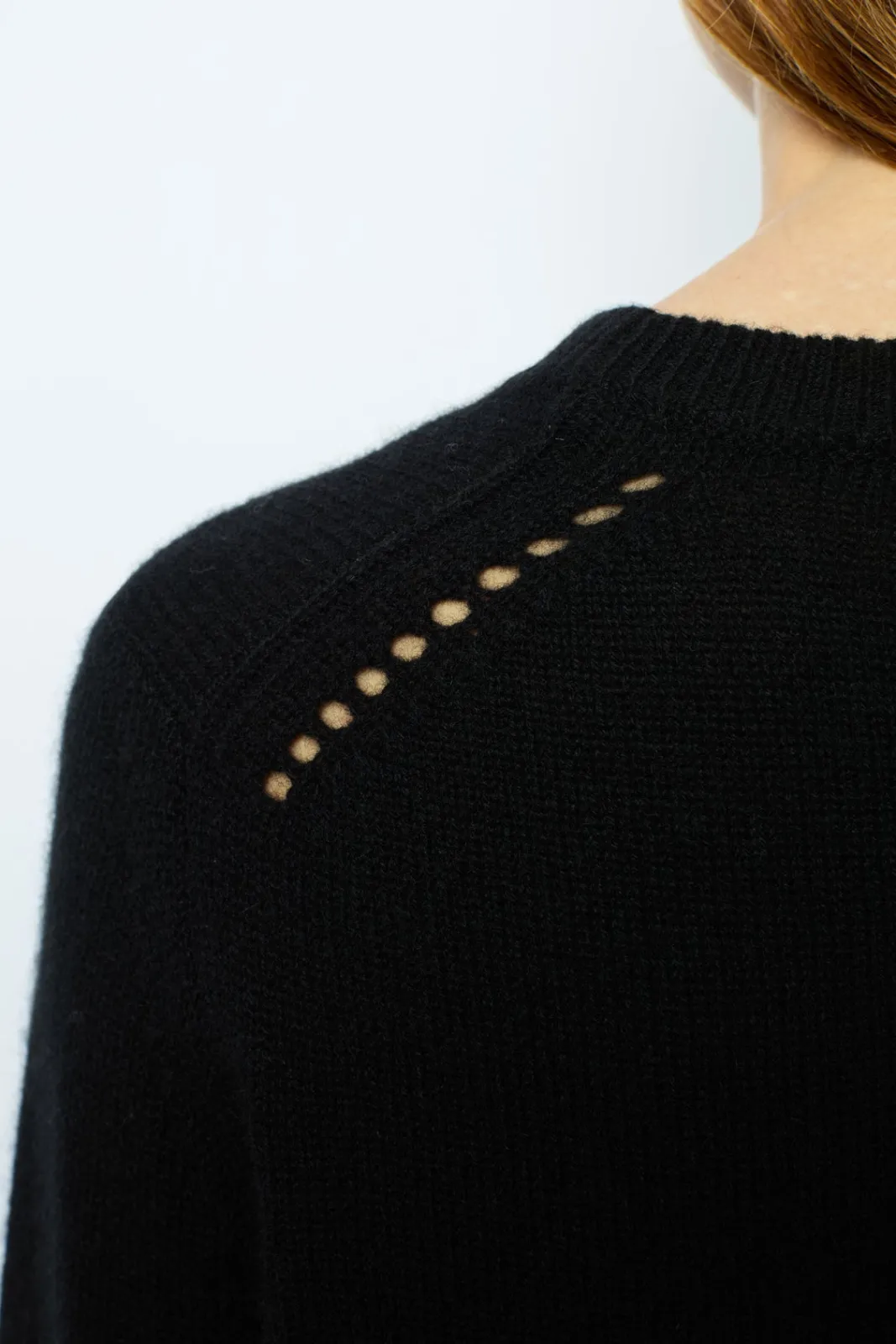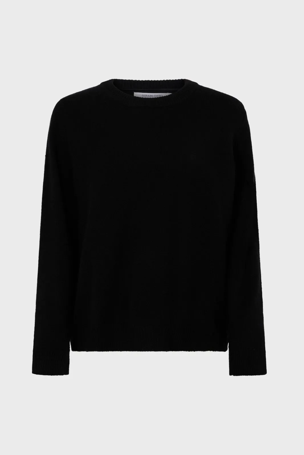 100% cashmere round neck sweater for ultimate softness. Timeless black color.