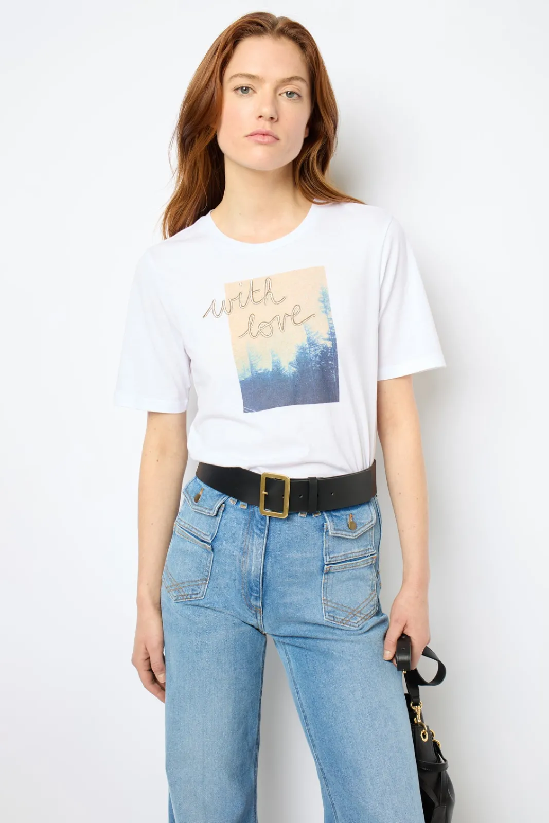 100% cotton t-shirt with an embroidered \”With love\” message and a picture.-Straight cut-Screen-printed and embroid…