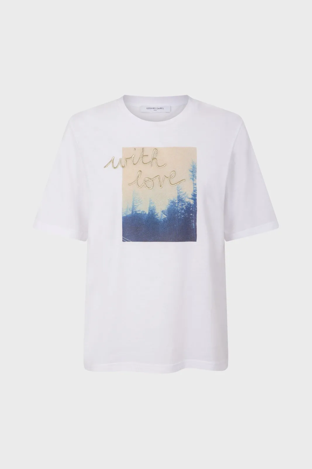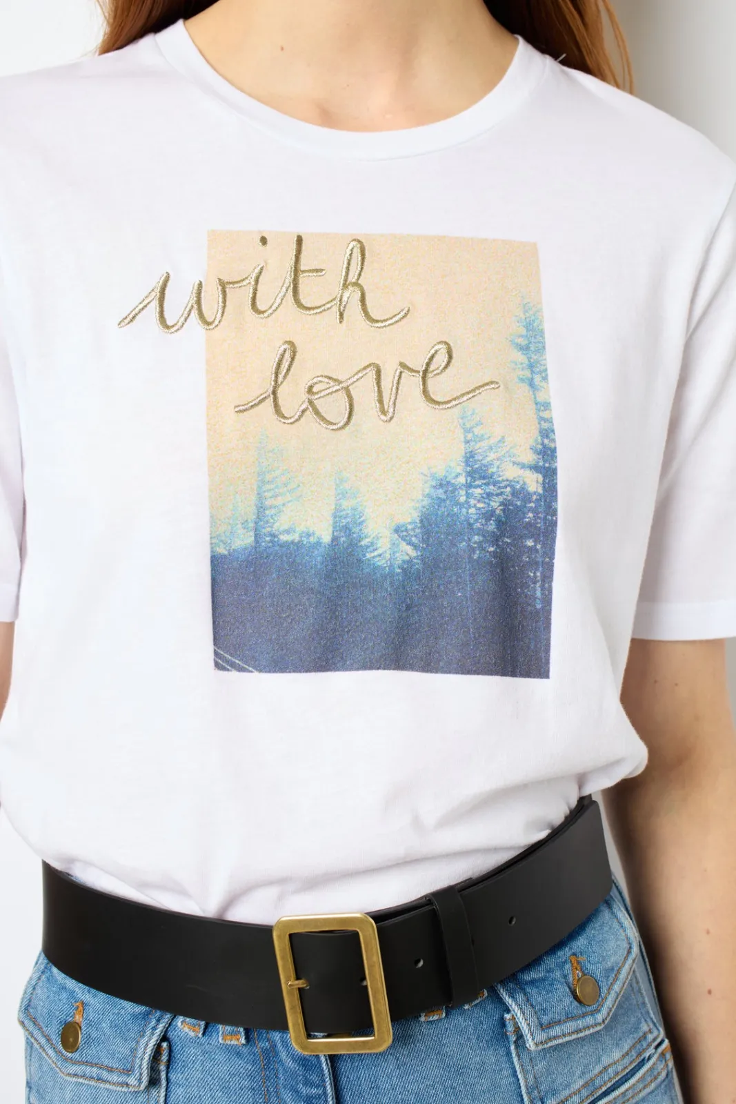 100% cotton t-shirt with an embroidered \”With love\” message and a picture.