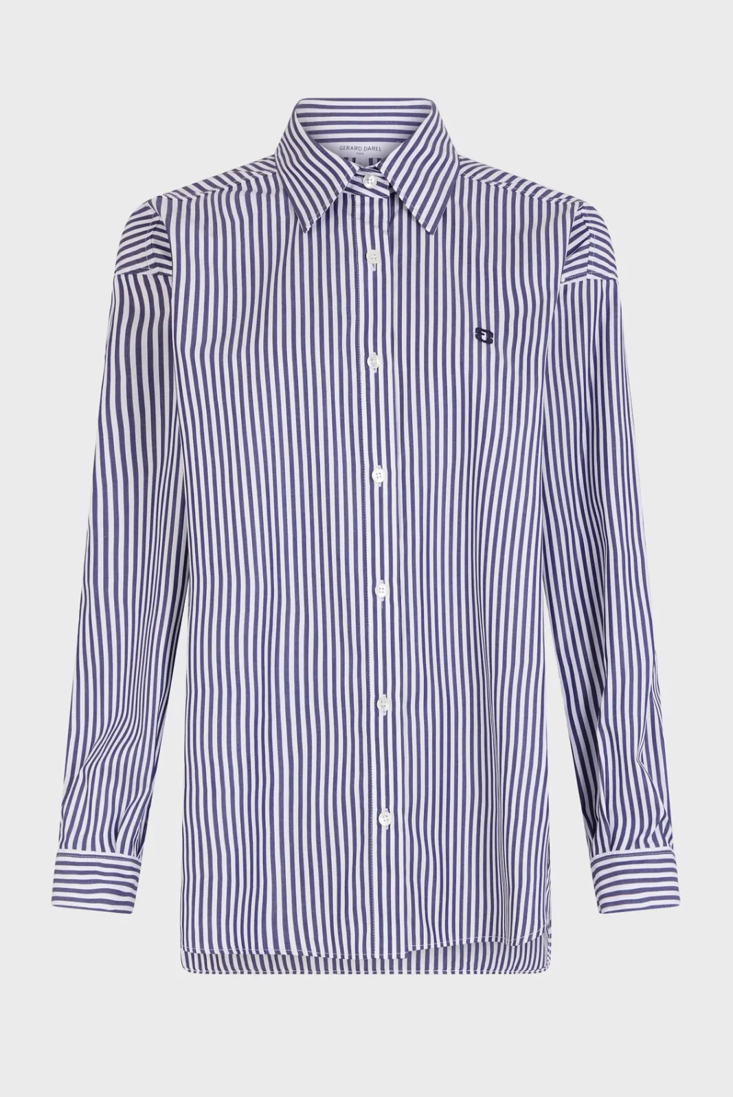 Striped poplin shirt. GD monogram embroidered on left side. 100% cotton.