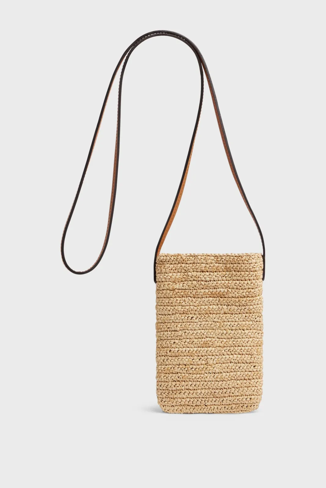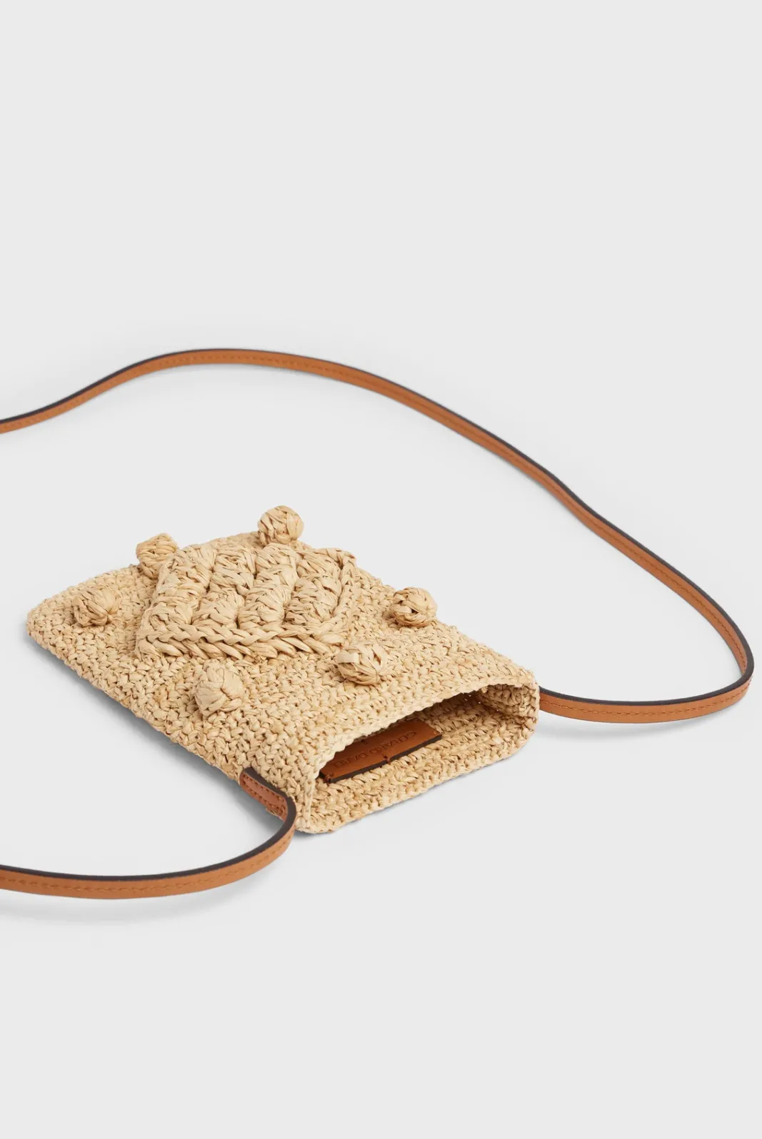 The ROSIE is an authentic hand-crochetednatural raffia phoneholder.Geometric graphics, worked in relief.