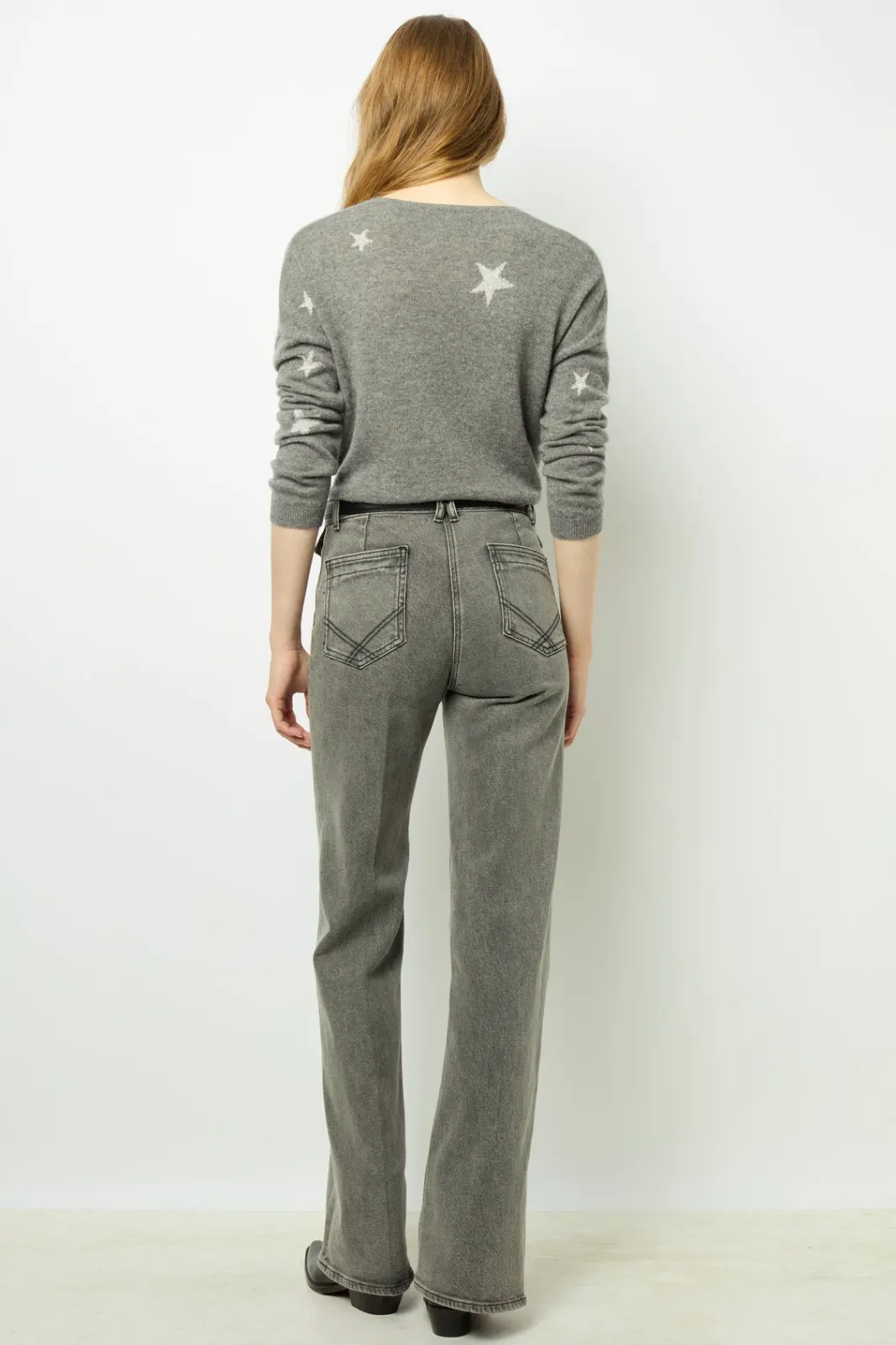 Fancy chic, 100% cashmere V-neck sweaterwith lurex stars.-Straight cut-Star pattern-Standard length-Dropped sleeves-V-ne…