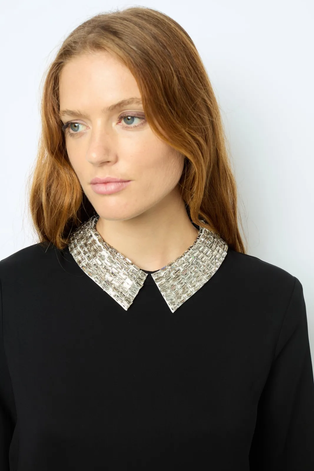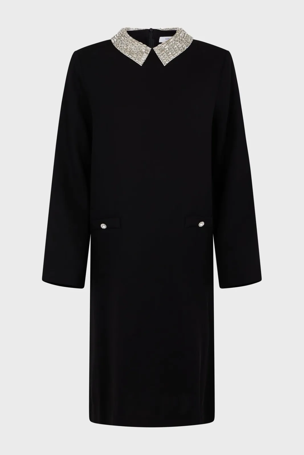 Plain mini dress with rhinestone shirt collar. A touch of sophistication for casual or formal occasions.-Straight cut-Pl…