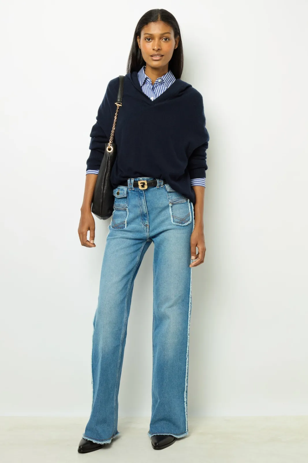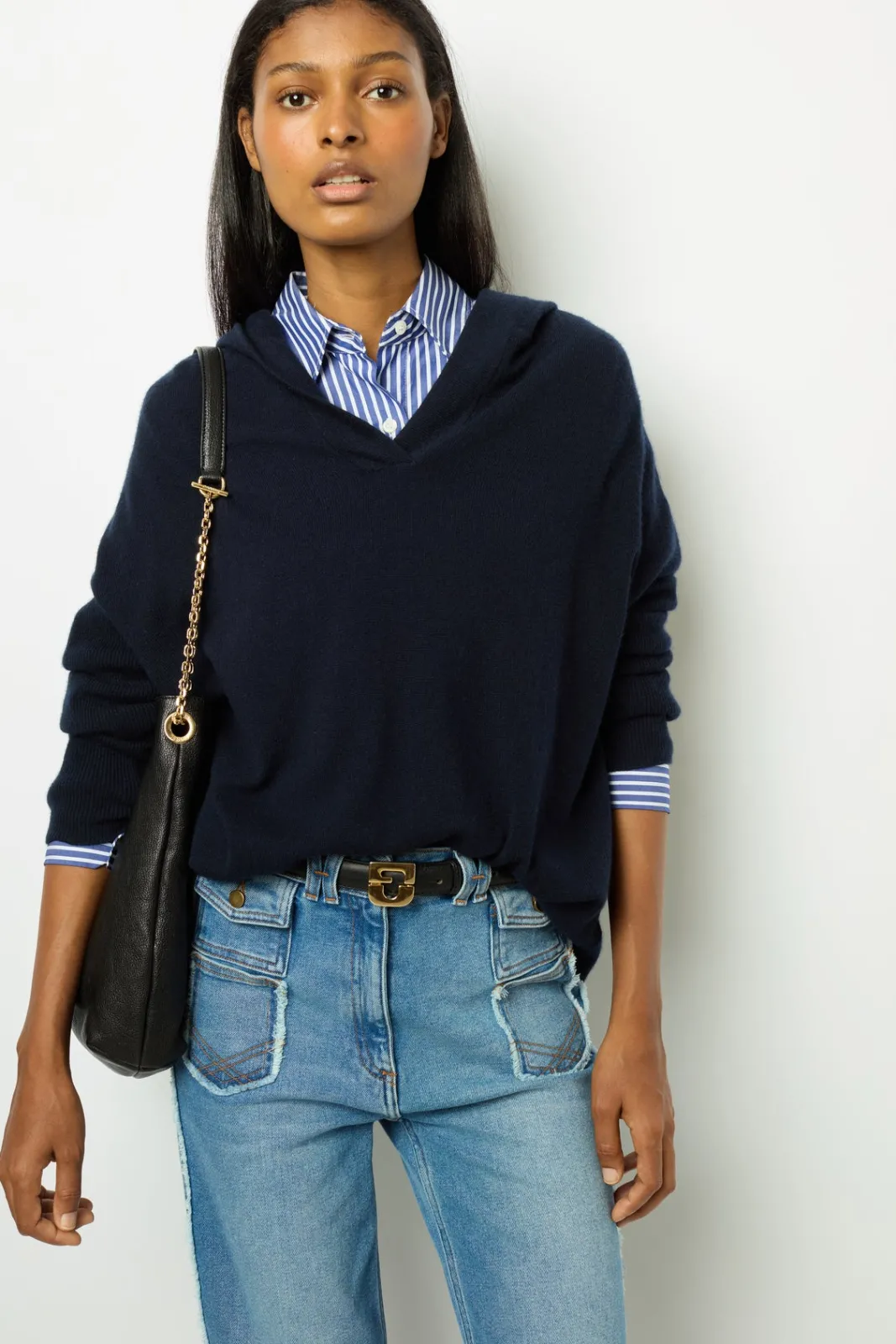 100% cashmere oversize hooded sweater.-Loose fit-Plain cashmere-Standard length-Dropped sleeves-Hooded V-neck-Batwing sl…