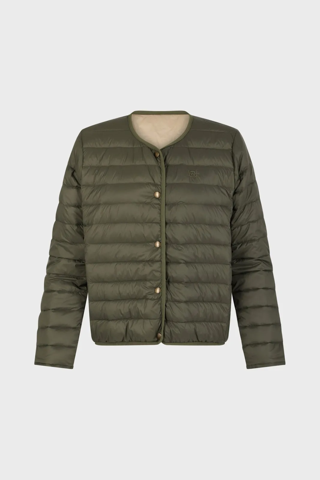 Short and light reversible down jacket. Quilted on one side, smooth on the other.