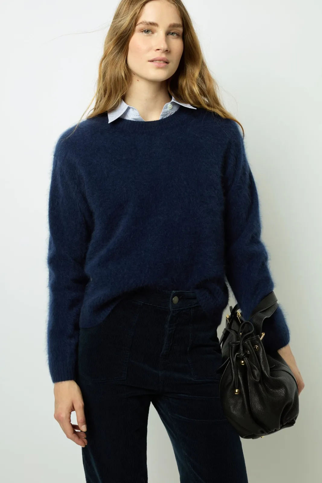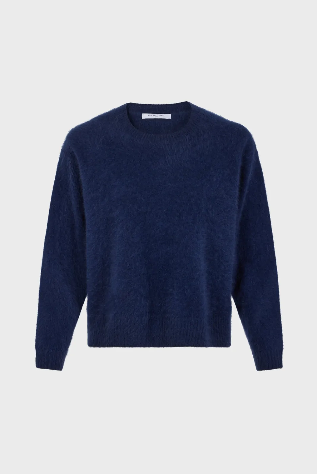 100% Brushed cashmere sweaterwith a slightly furry appearance.