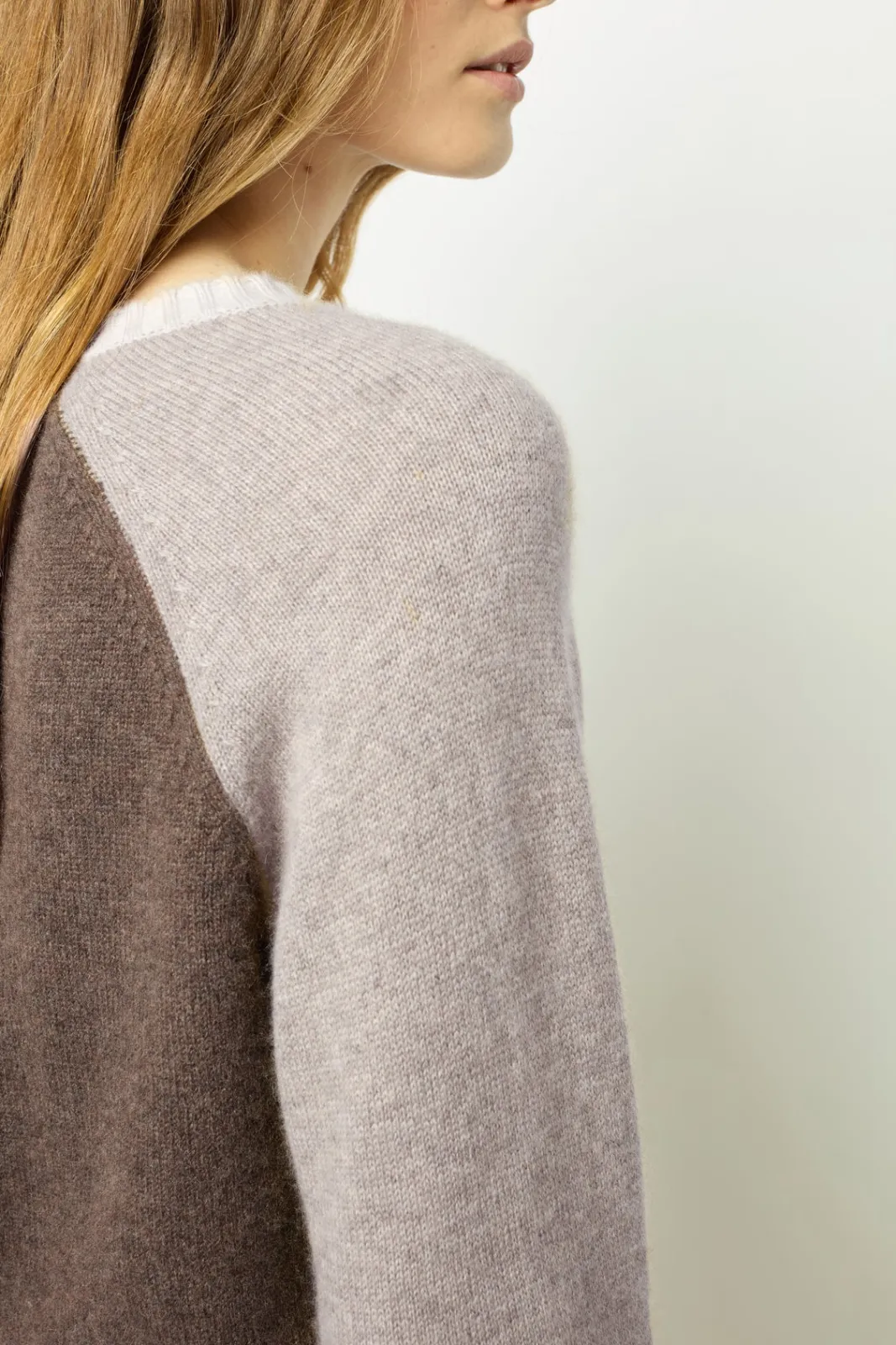 100% cashmere sweater in tonal shades.Soft colors in a mid-winter spirit.