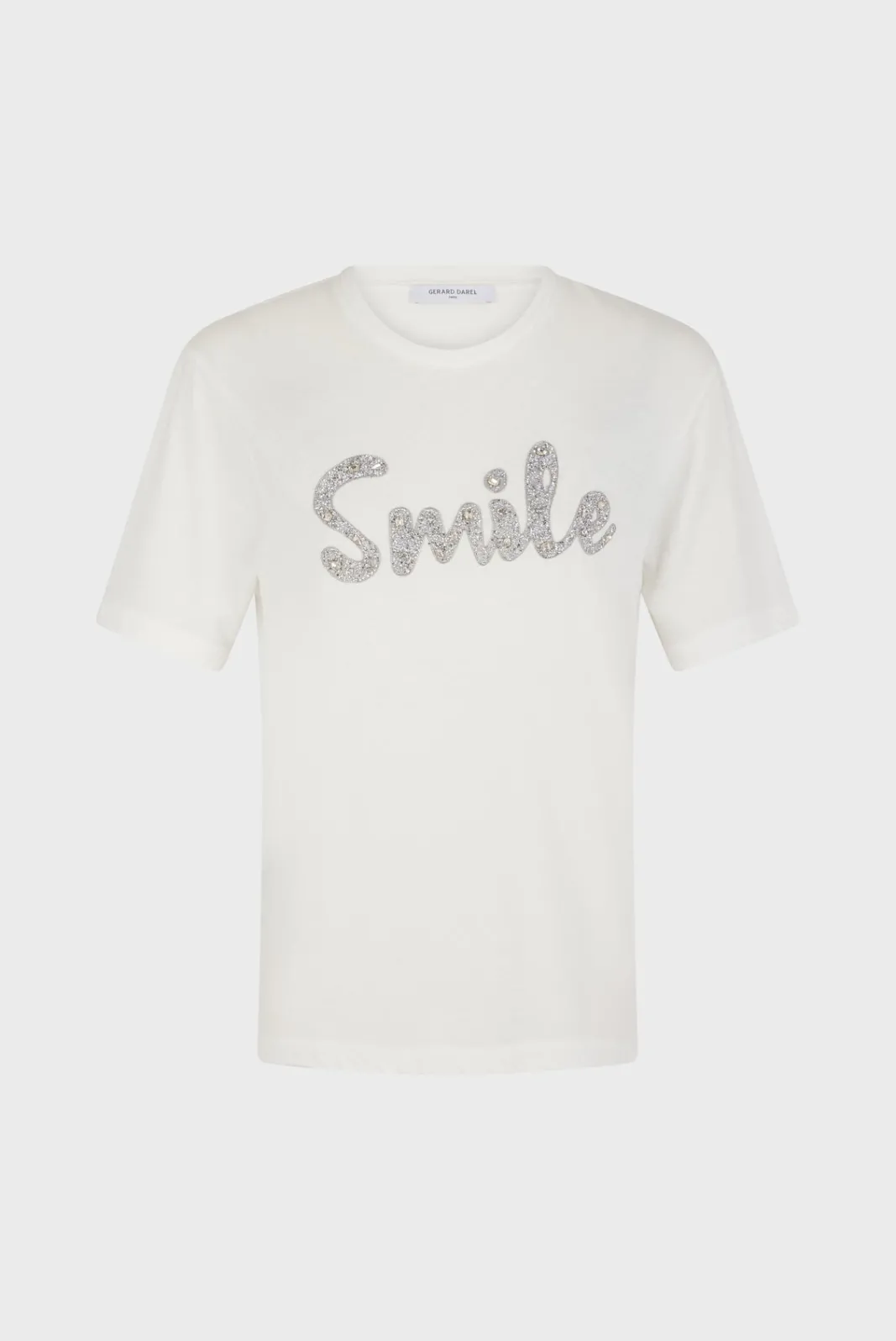 100% cotton T-shirt with a rhinestone \”Smile\” message.-Straight cut-Plain cotton-Round neck-Short sleeves-The mode…