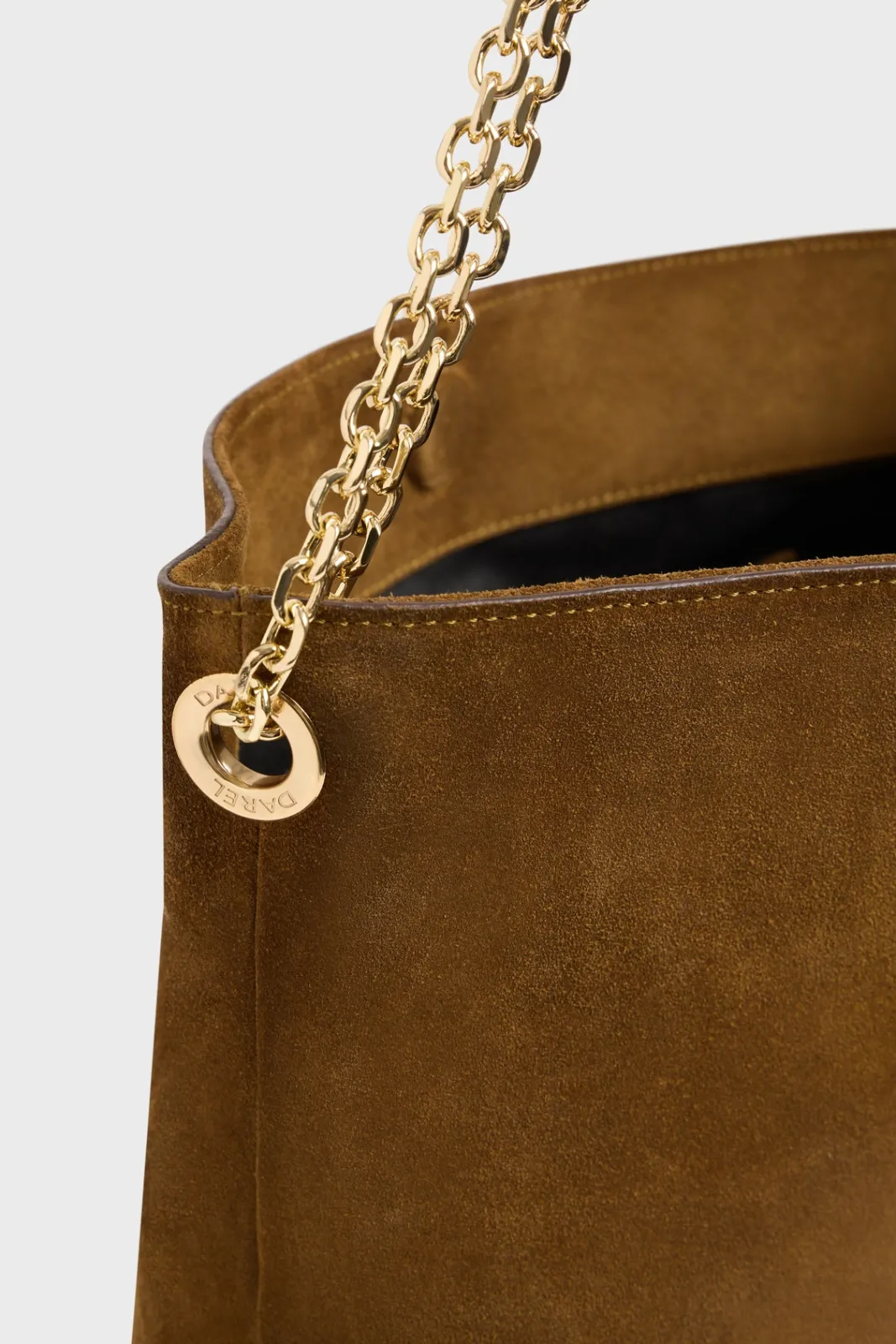 In quality suede leather, its very fine moirage and its corners in cowhide leather, offer a new shade between silky and patinated touch, signed Darel in gold, for a light accomplice of everyday.