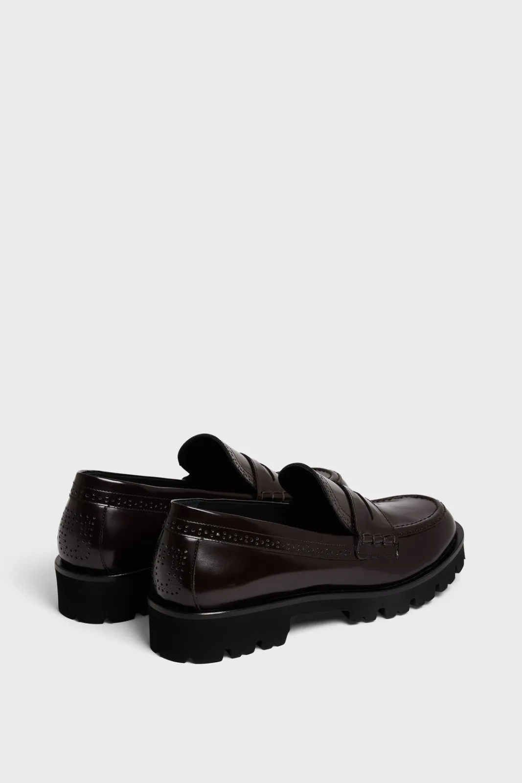 Loafers in glazed leather with notched sole, a new look at a classic style.