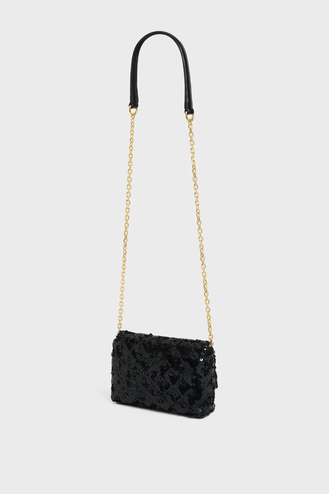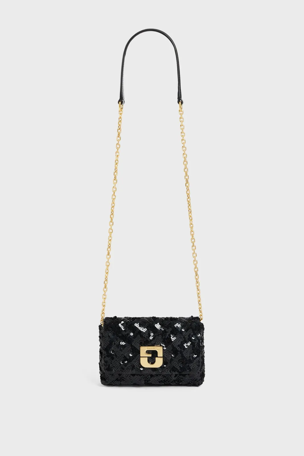The Mini Fanny is a small jewel of subtlety in the collection. Its ideal format day and night and its shoulder strap between leather and chain, offer a comfortable worn, both chic and practical. But it is in metal on the clasp of its padding set with sparkling sequins, that shine its initials on a background of rhombuses with graphic and sensual lines, a real piece of creator.