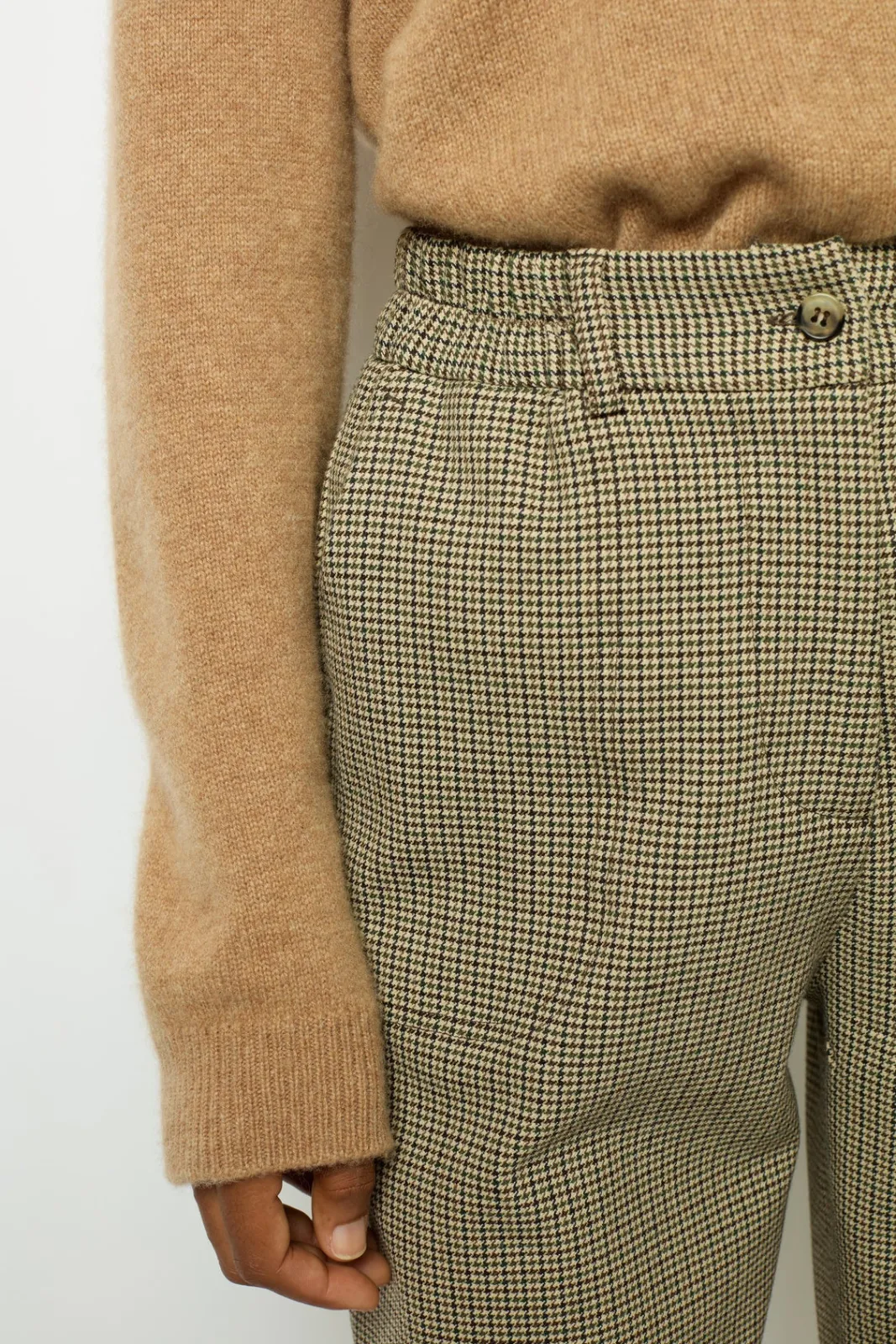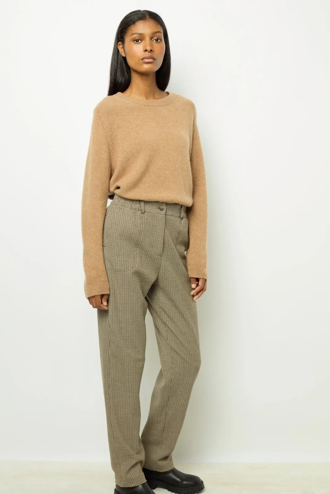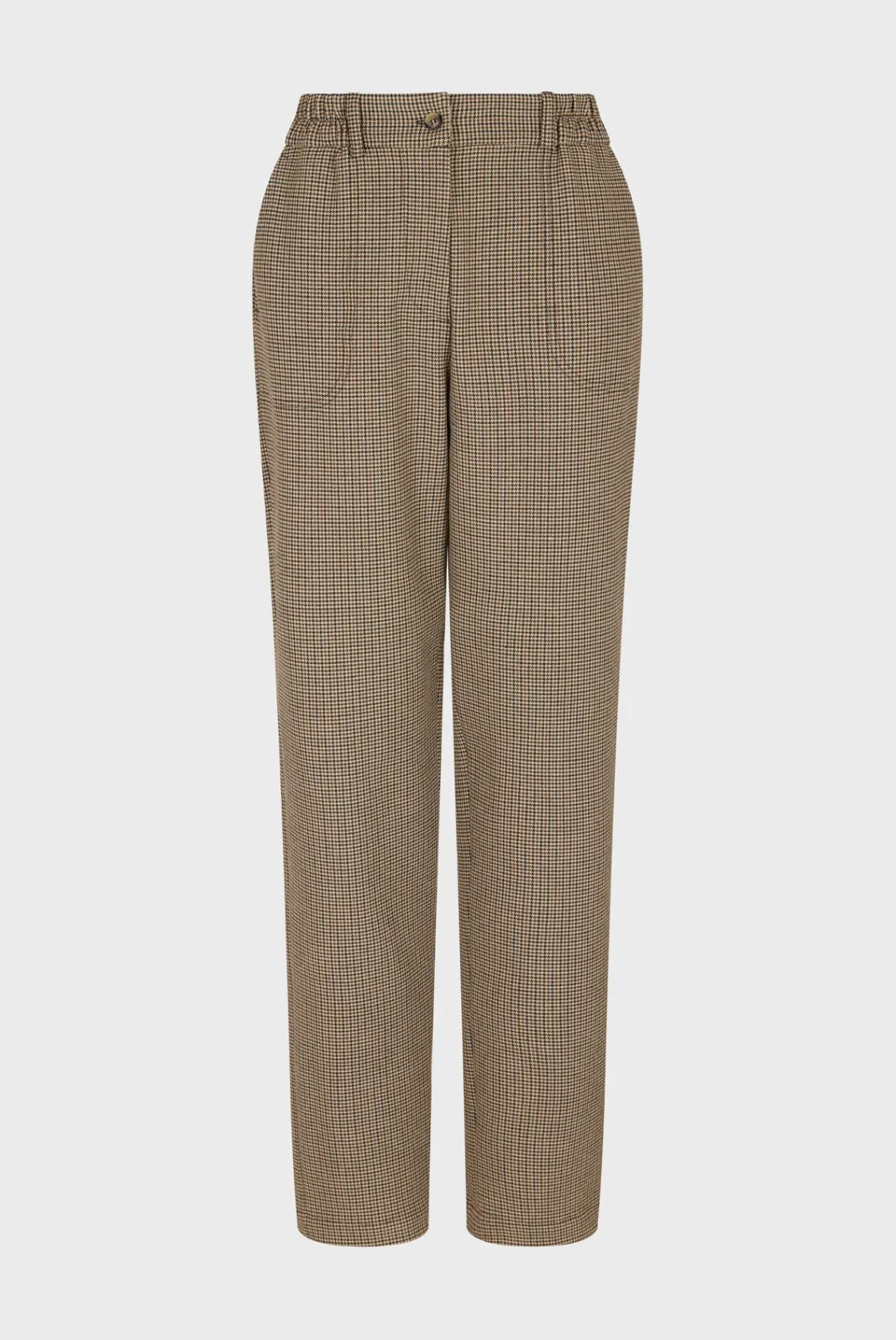 Carrot pants with micro houndstooth pattern. Elasticated waist for added comfort