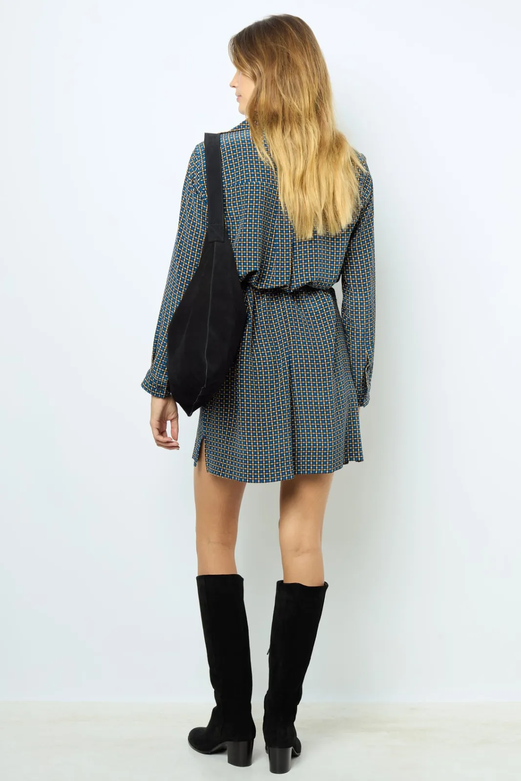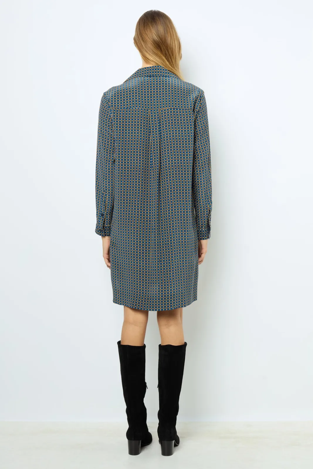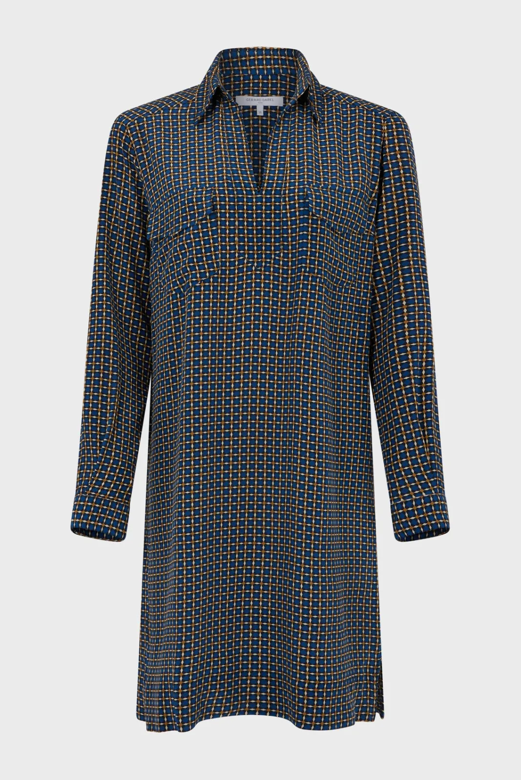 Short, straight dress in silk crepe de Chine with a fluid, elegant fall. 100% silk. Shirt collar.