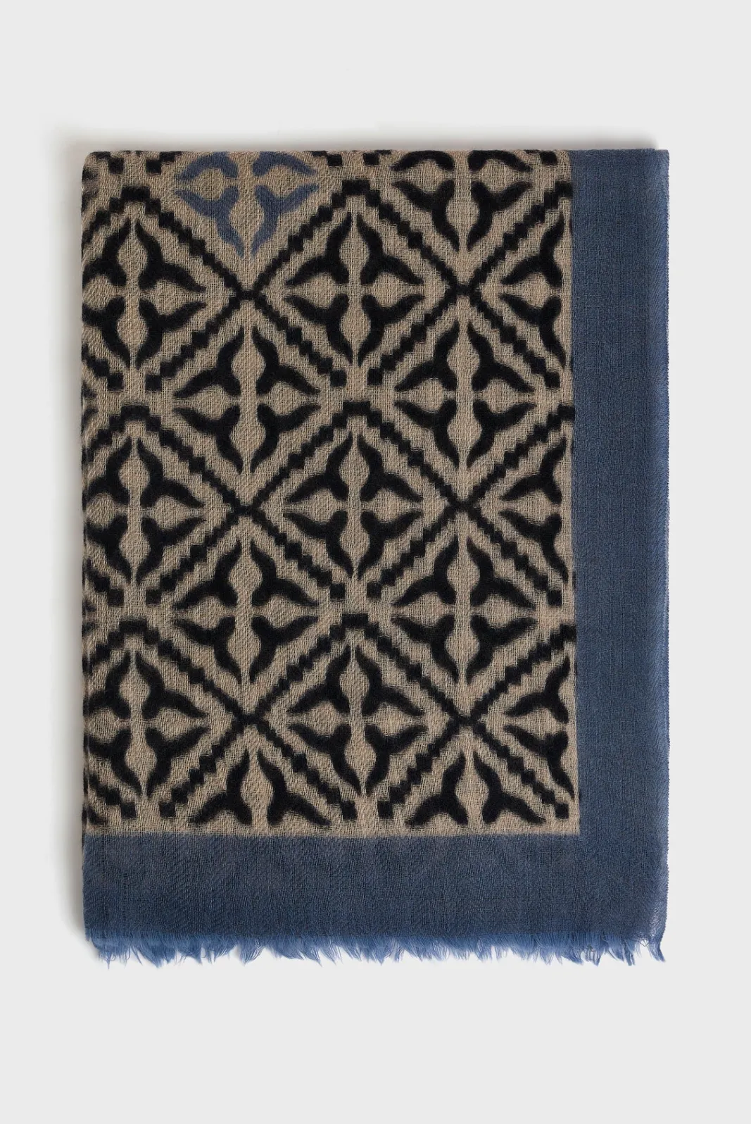 Wool and cashmere scarf with two-tone geometric print.70x180cm-Rectangular-Geometric print-Fringe details