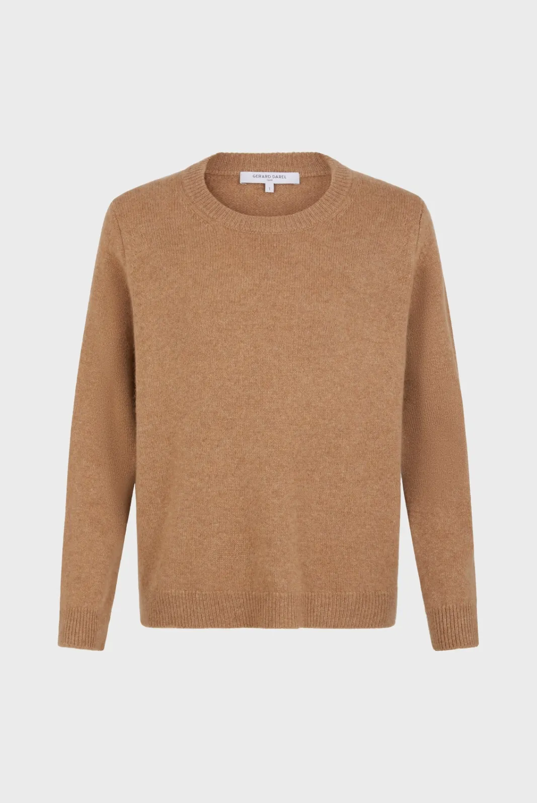 100% cashmere round neck sweater for ultimate softness. Timeless camel color.