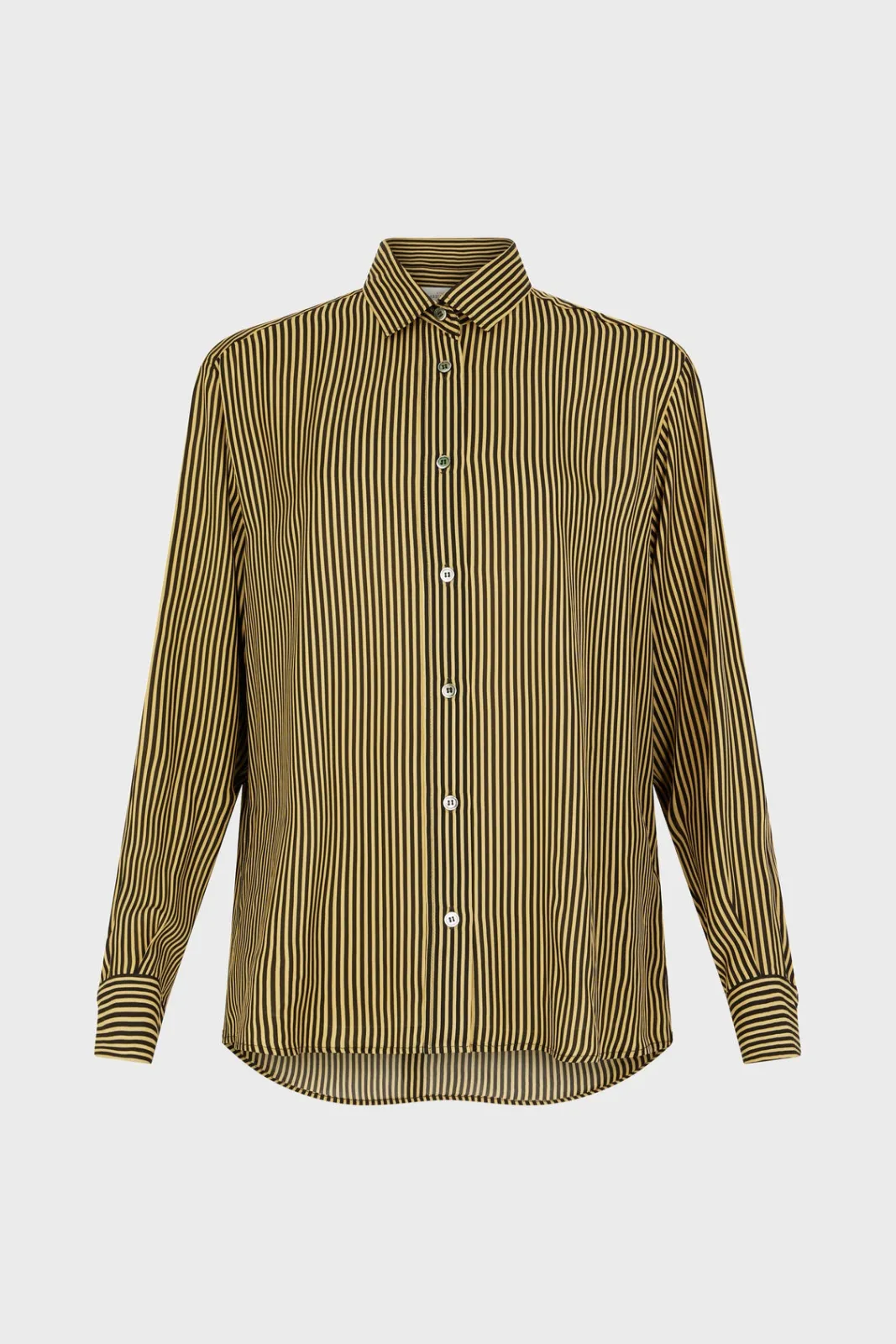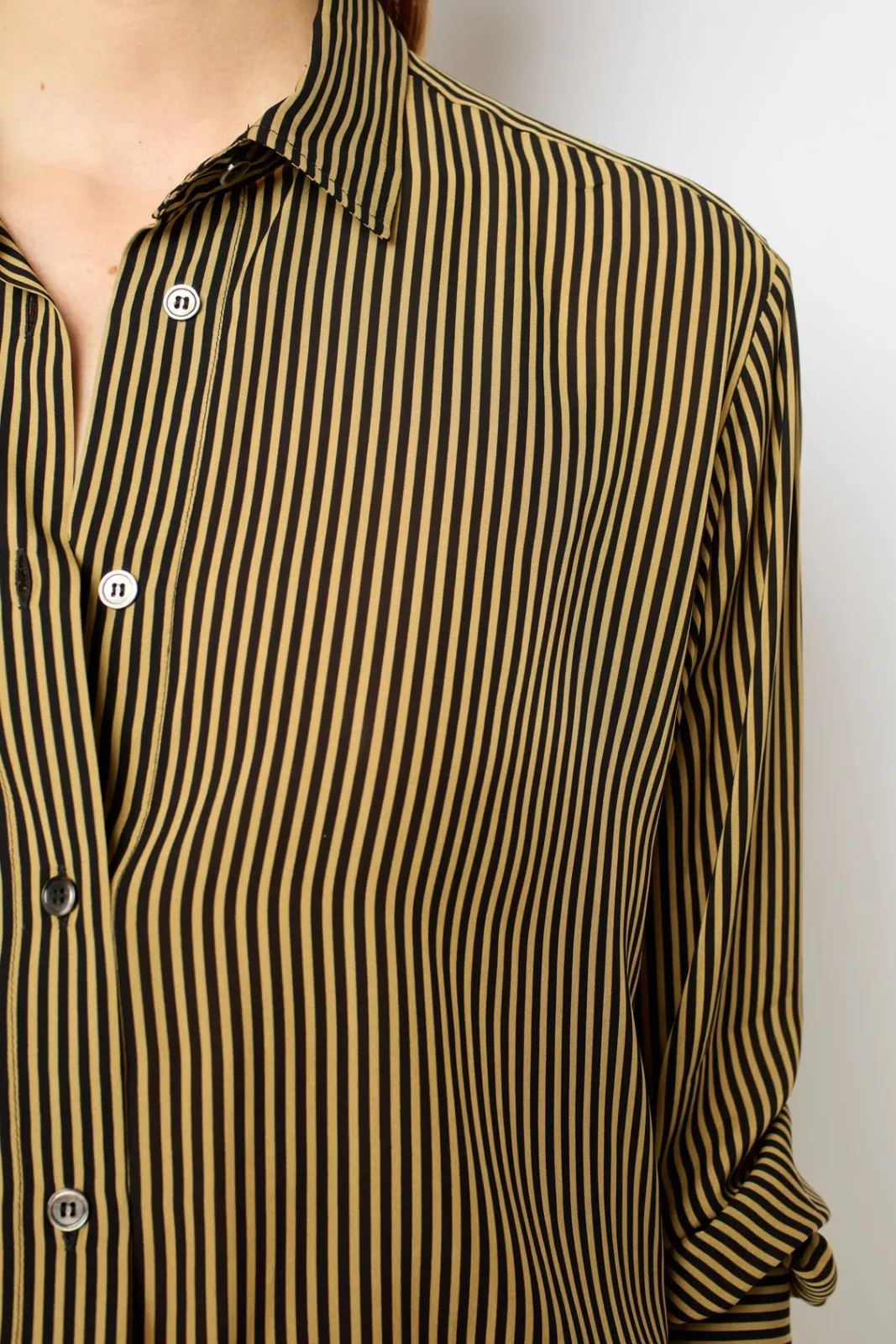 Shirt with contrasting beige and black stripes. Soft, silky feel.