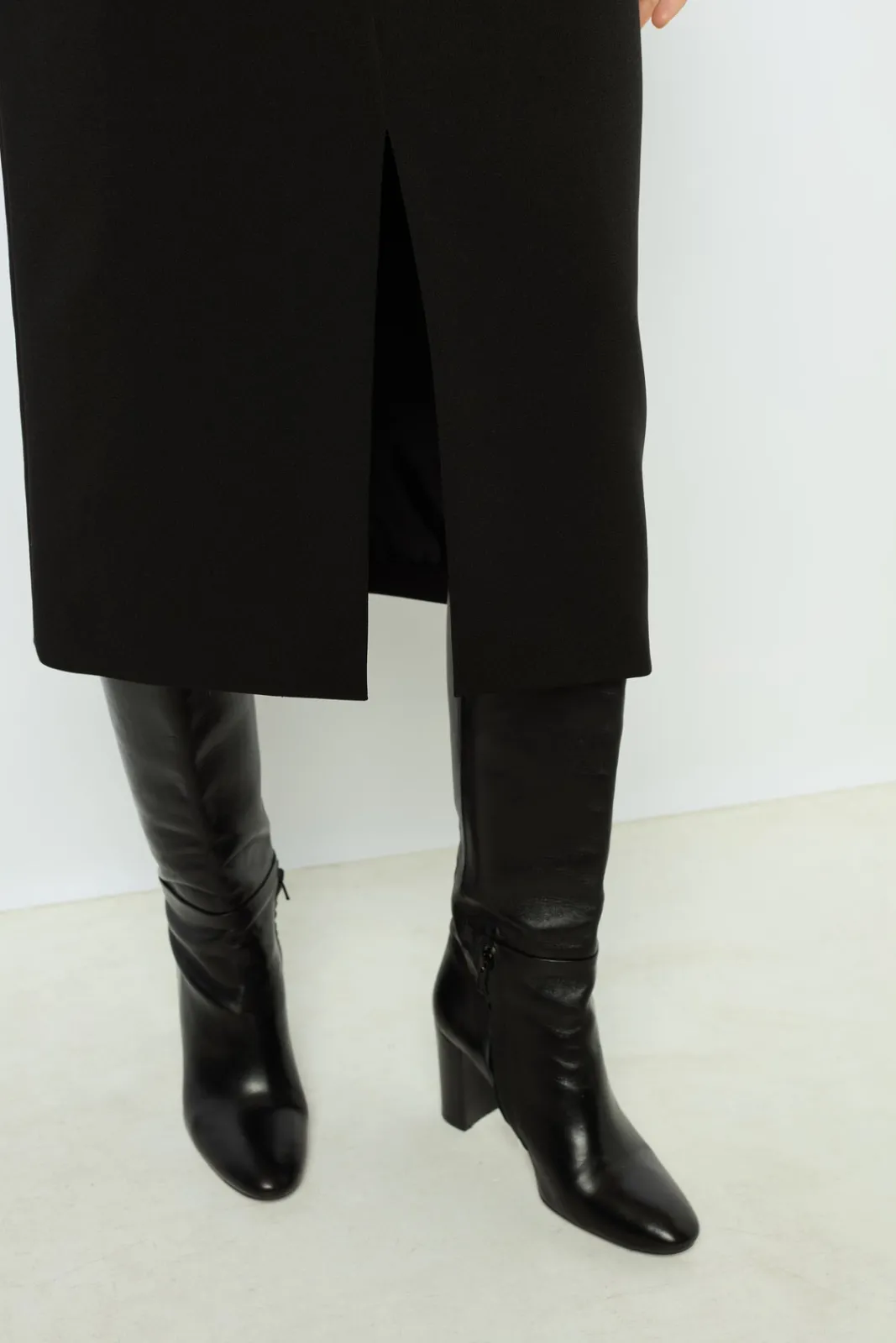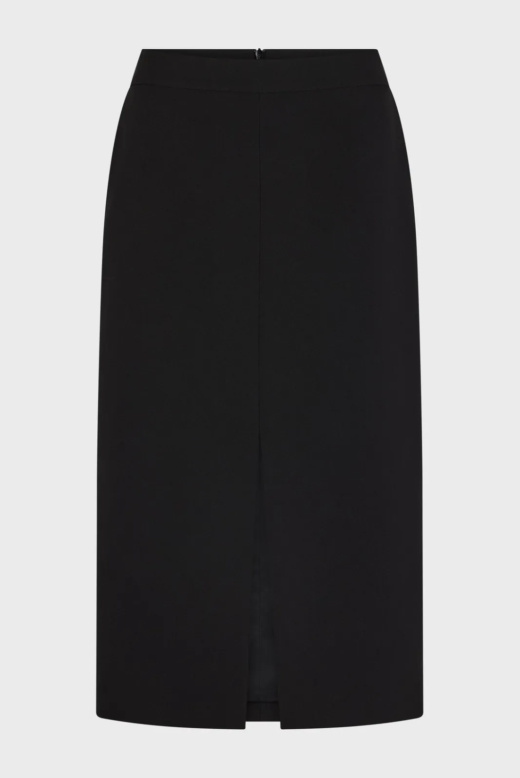 Crepe straight skirt for a chic look.-Straight cut-Plain fabric-Mid-length-Fastened with zipper on the back.-Bias Italia…