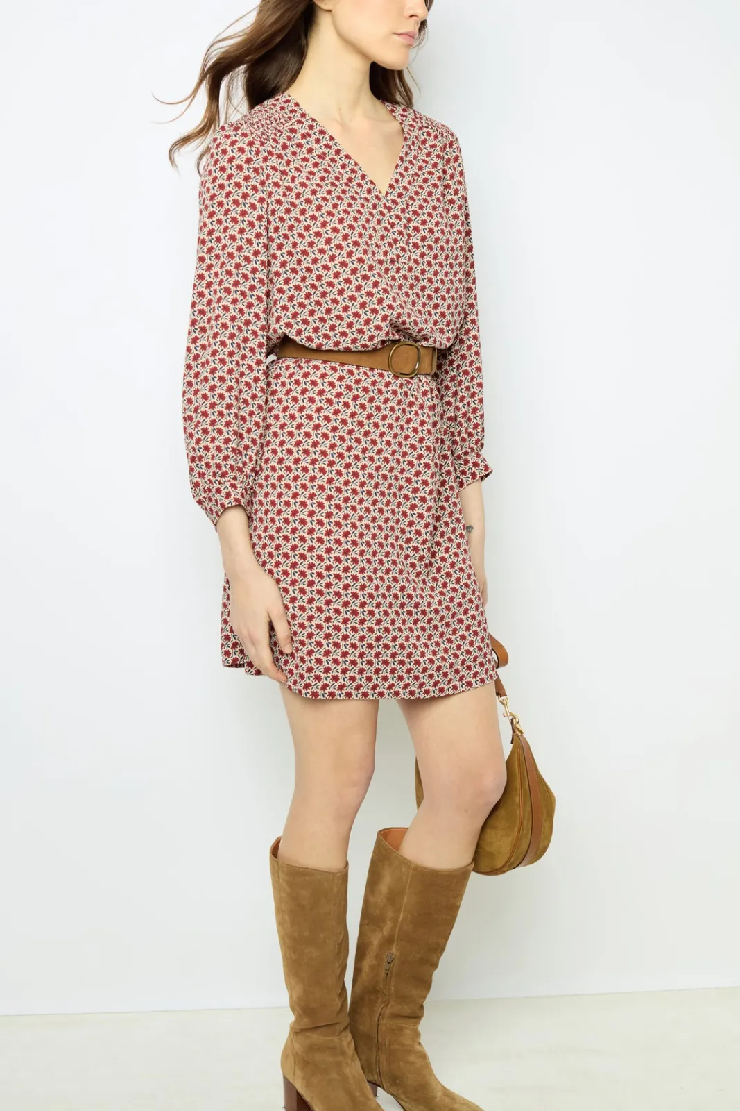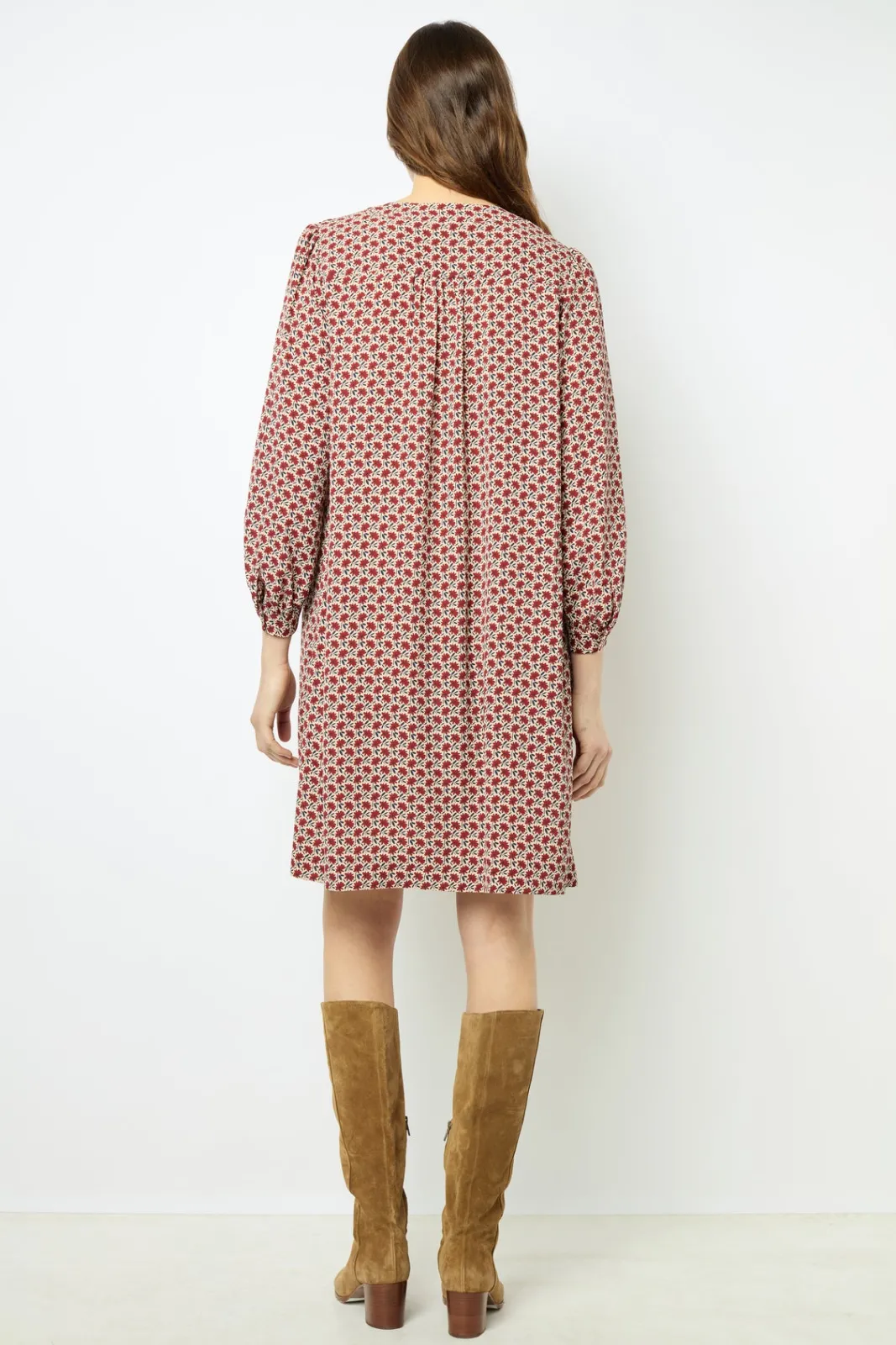 Crepe mini dress with a daisy print.