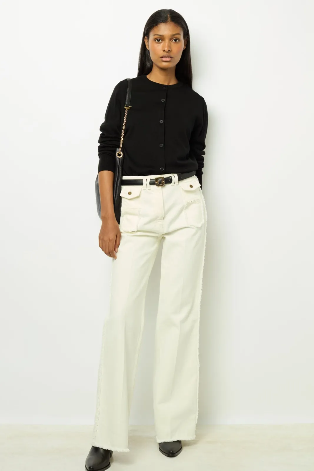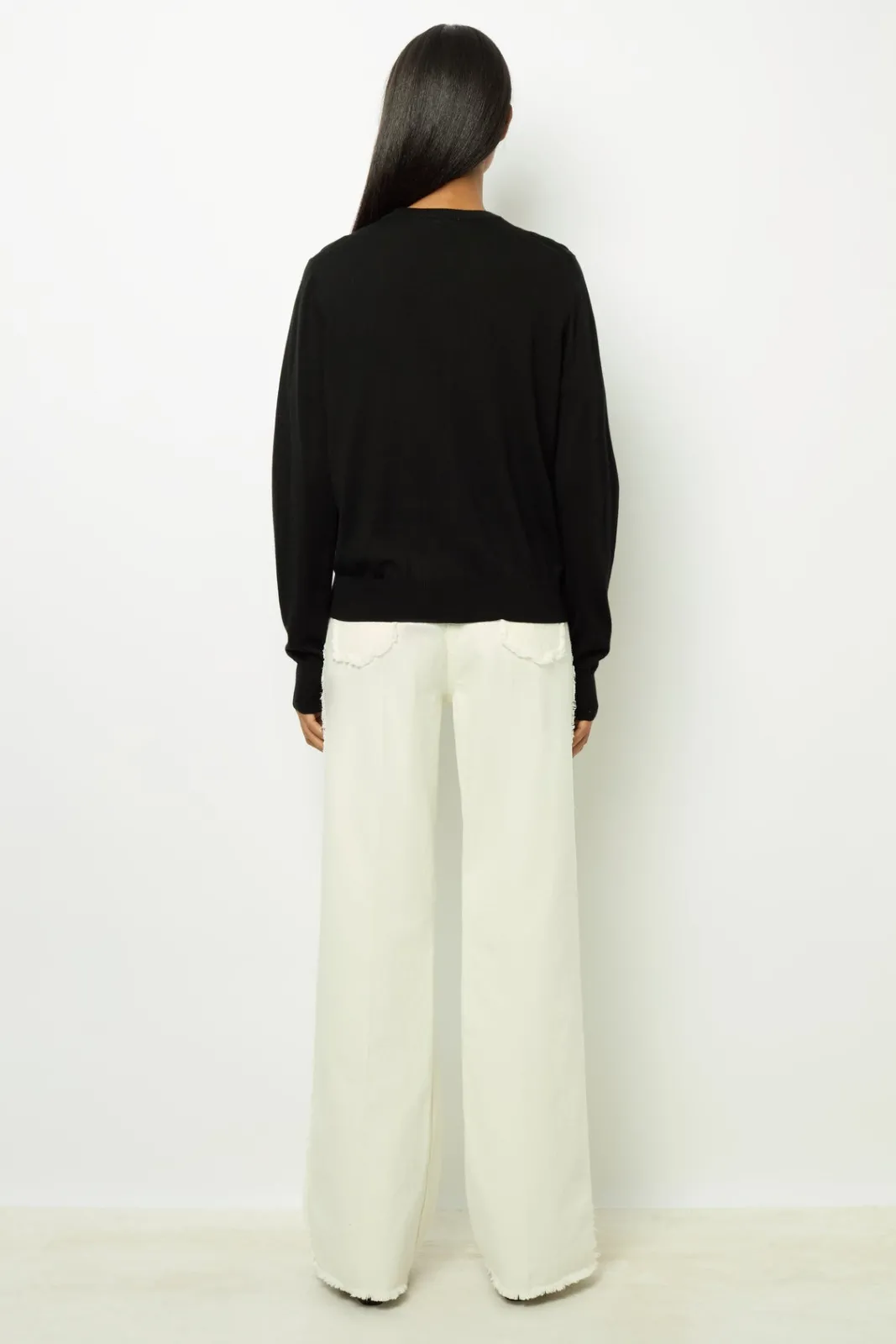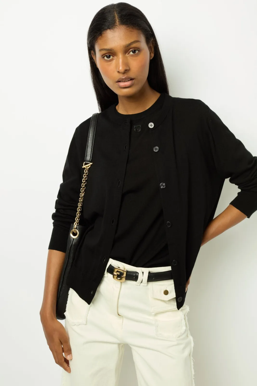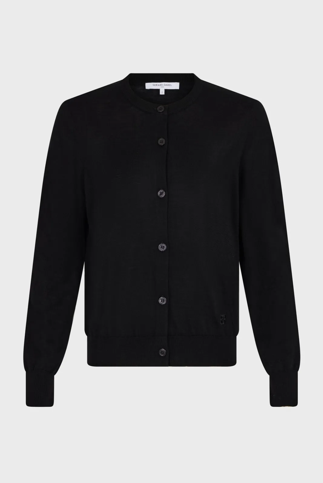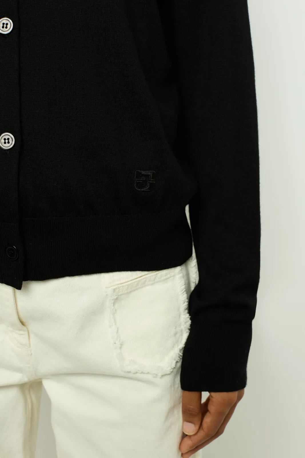 Fine wool cardigan – Pair with the matching sweater as twin set. GD monogram embroidered at bottom. 100% merino wool.