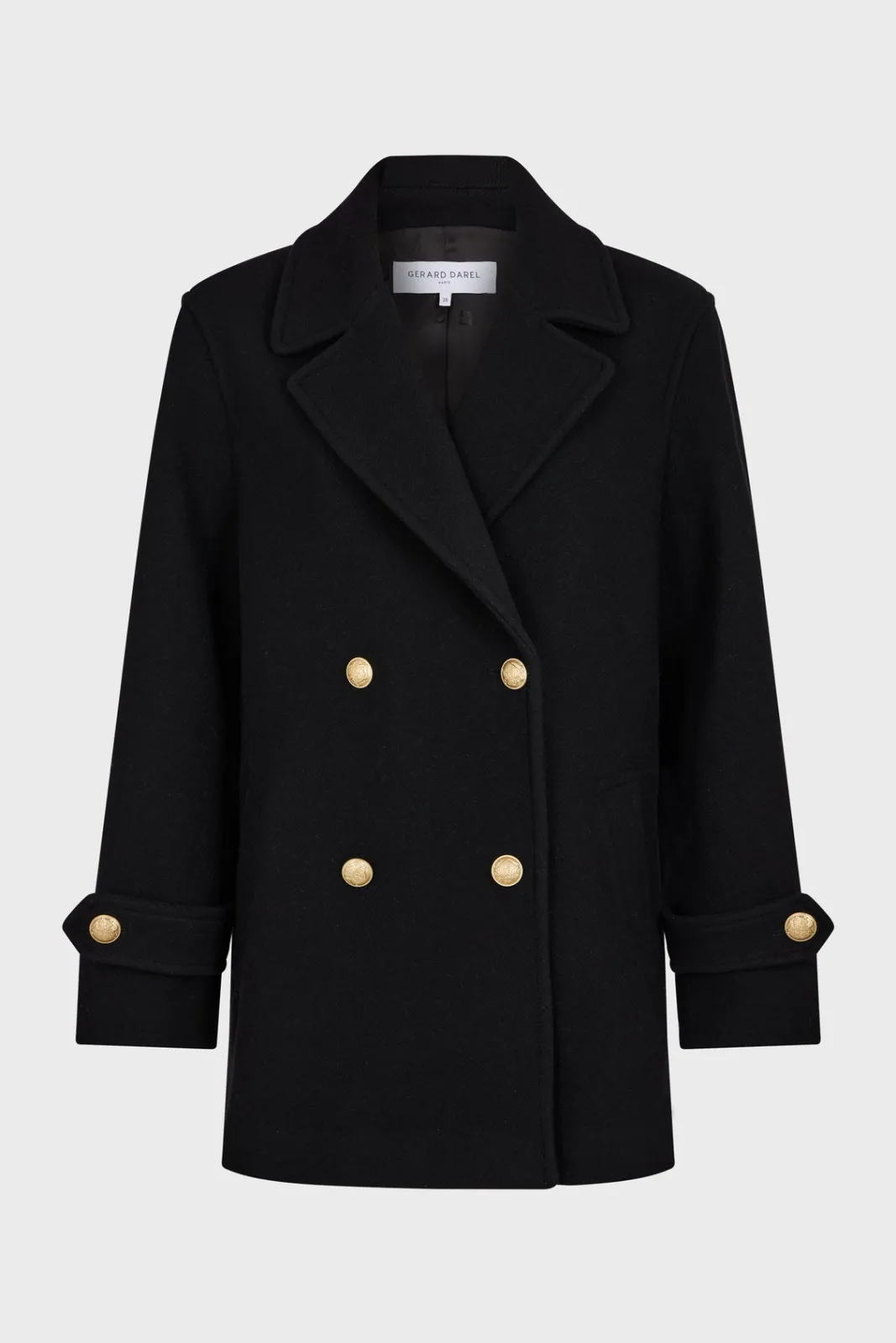 Virgin wool blend pea coat for a contemporary twist. Ideal length to wear with dresses and skirts.