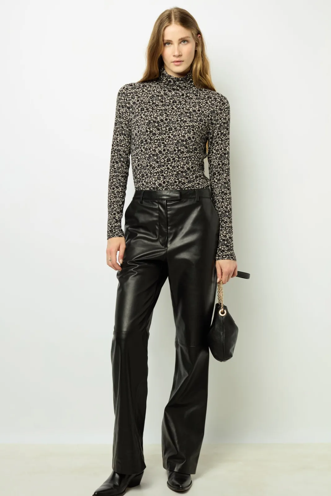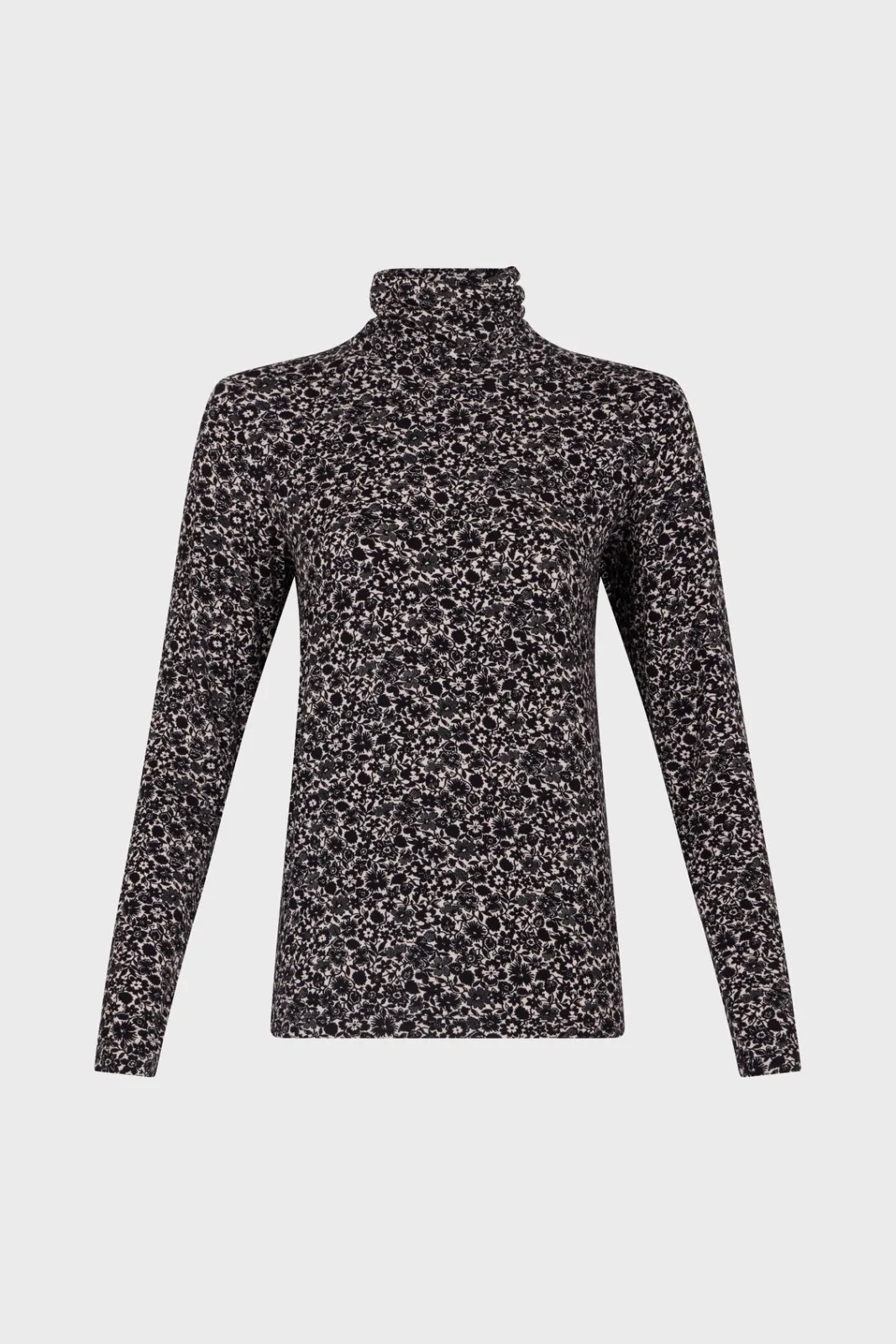 Turtleneck sweater with two-coloured flowers.-Straight shape-Floral pattern-Turtleneck-Long sleeves-Stretch for added co…