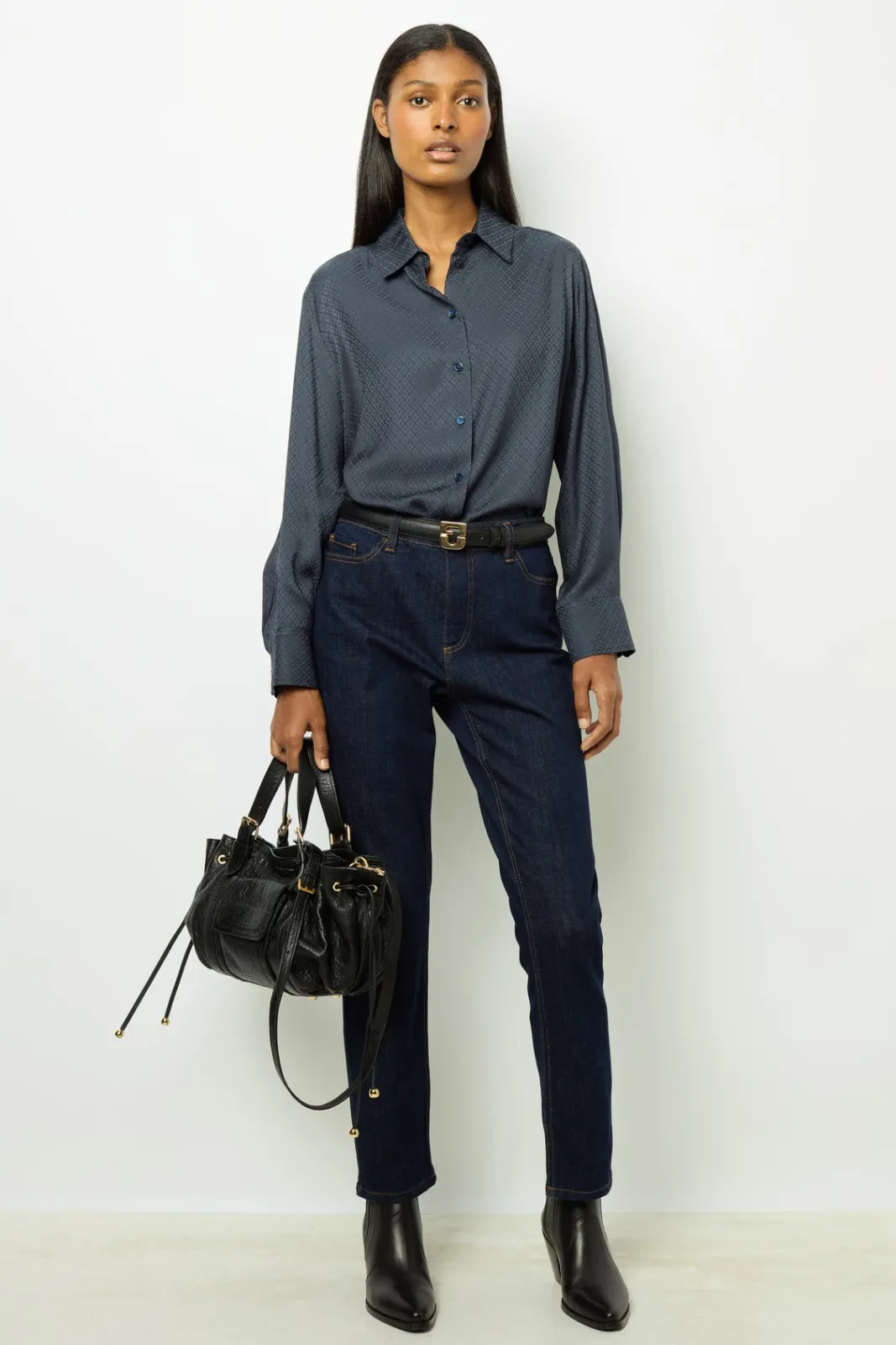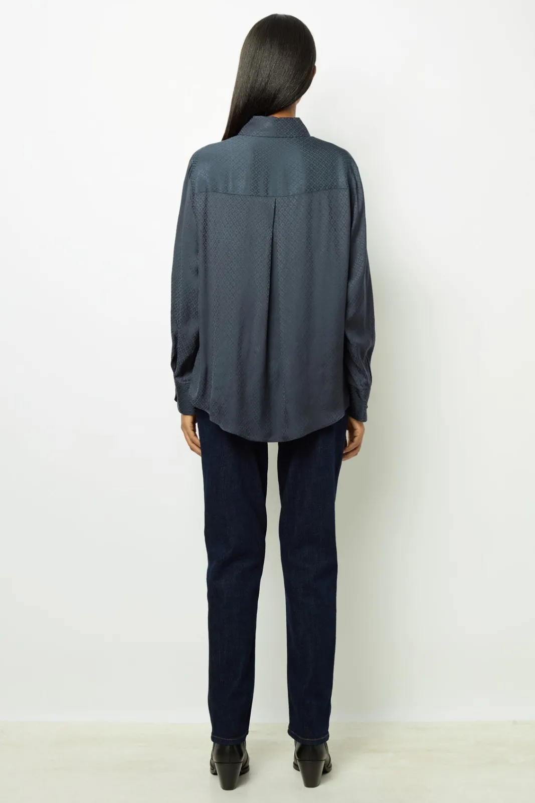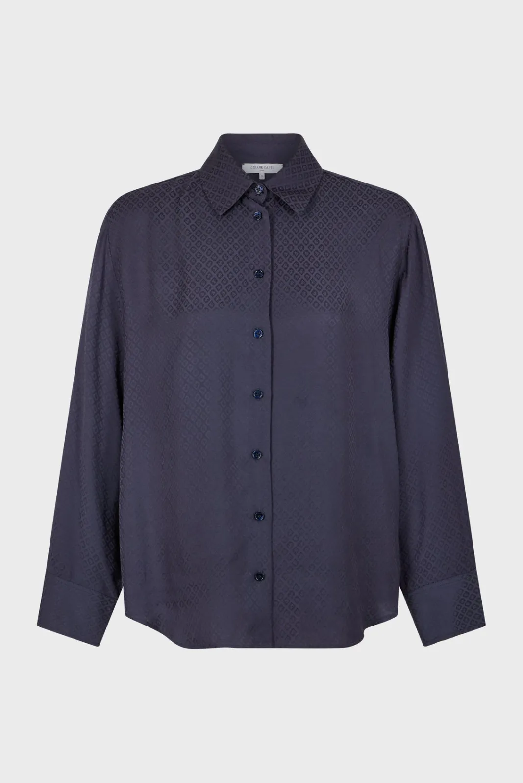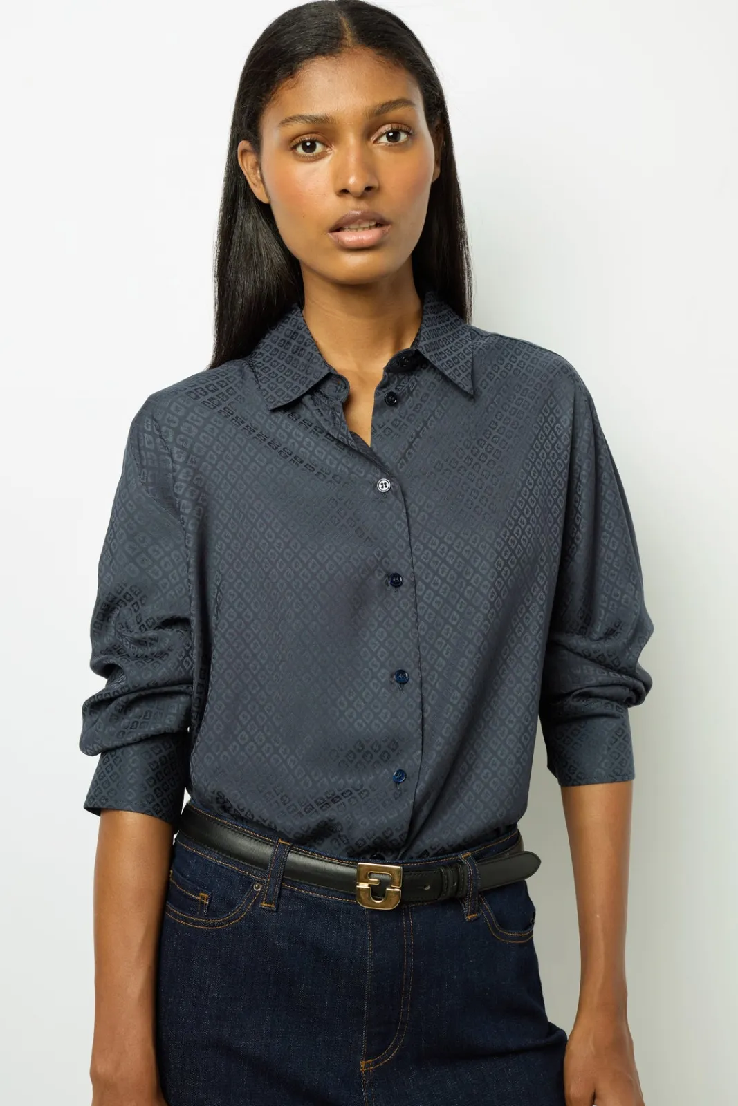 Satin shirt with all-over GD monogram.-Flowing-Graphic pattern-Classic armhole-Shirt collar-Long sleeves-Cuff fastened w…