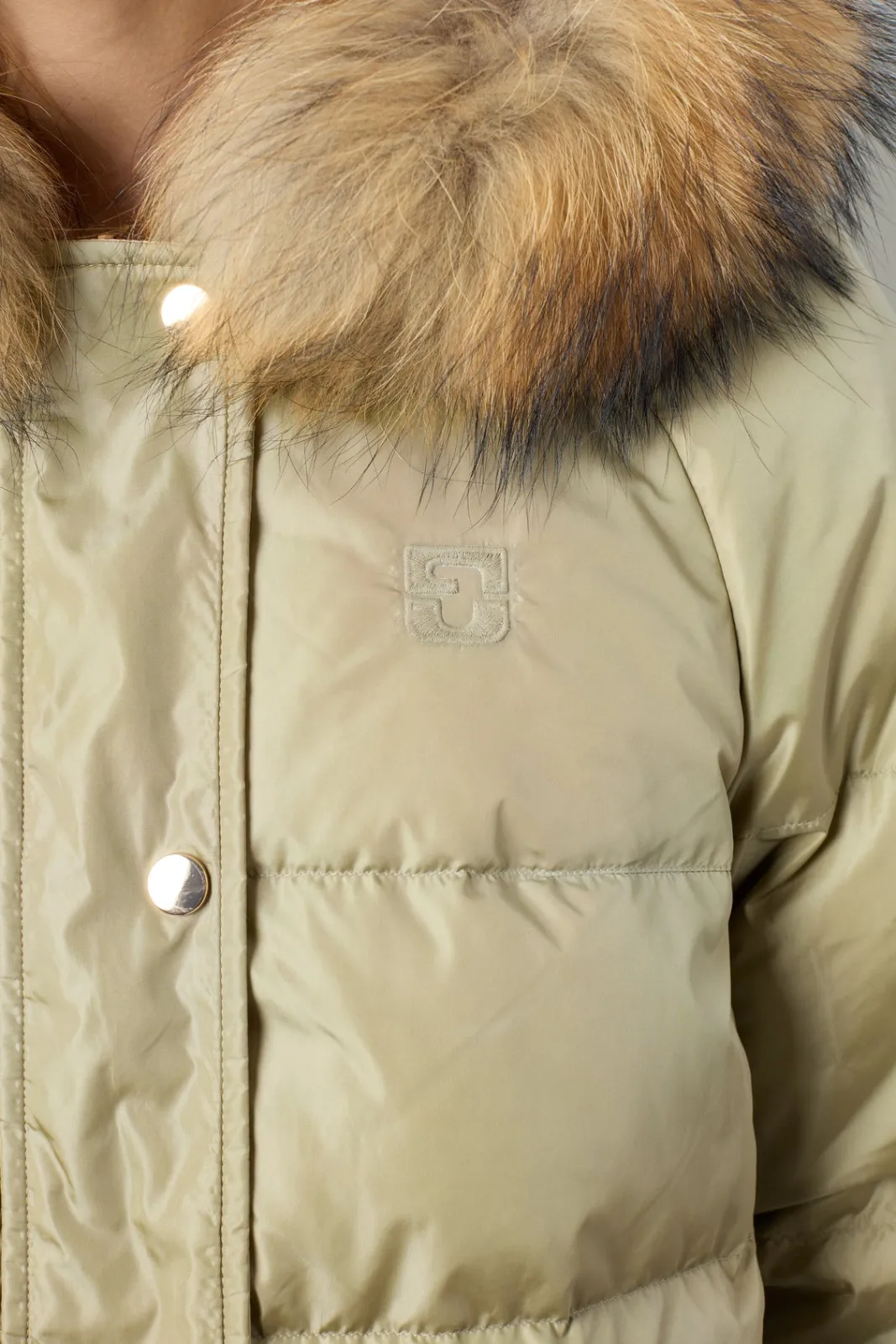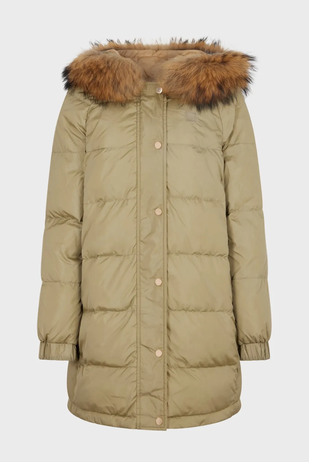 - – Two-tone down jacket, smooth on one side and quilted on the other.
