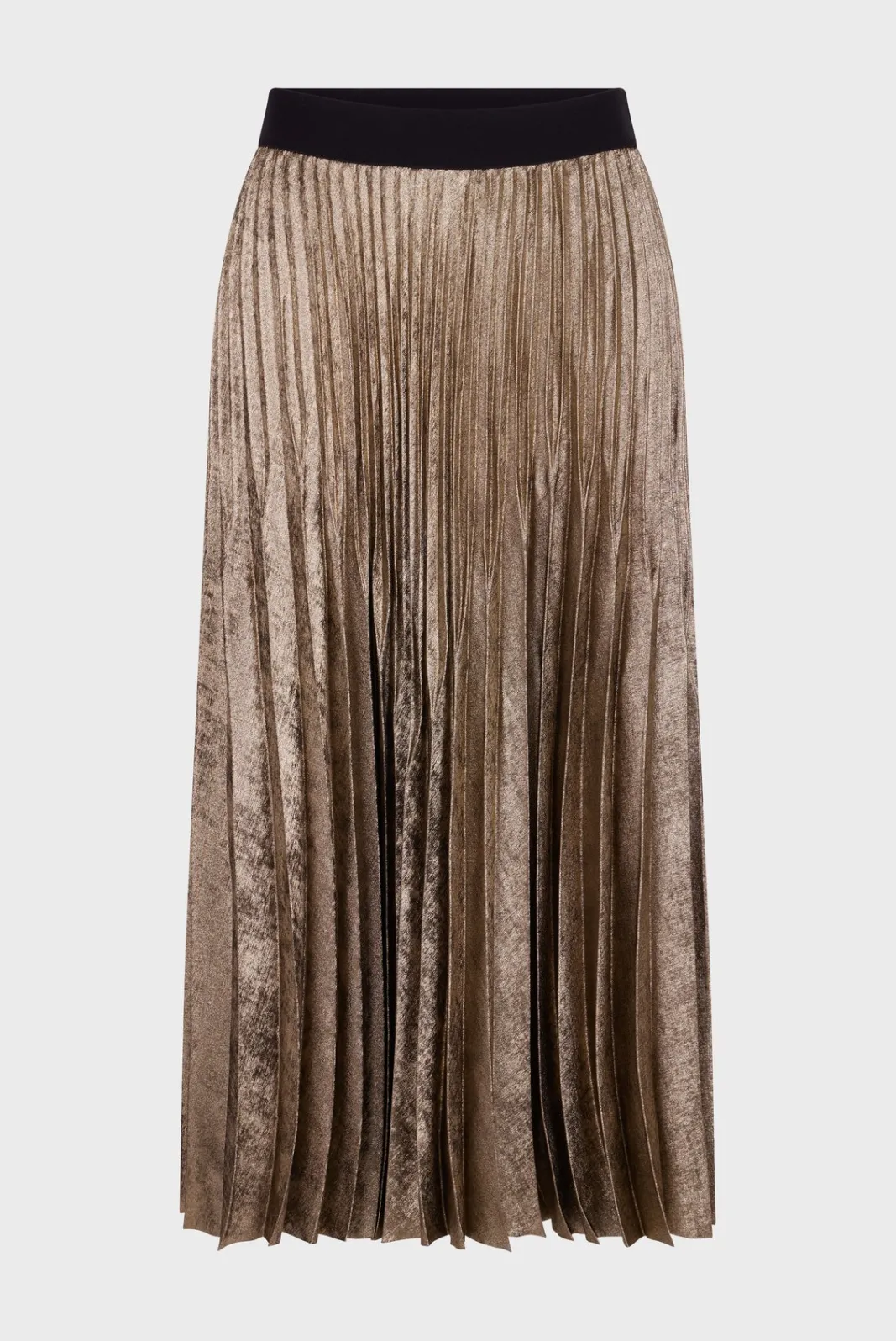 Gold-tone pleated midi skirt for a new look at a classic style.-Pleated-Plain fabric-Midi-Elasticated waist-The model is…