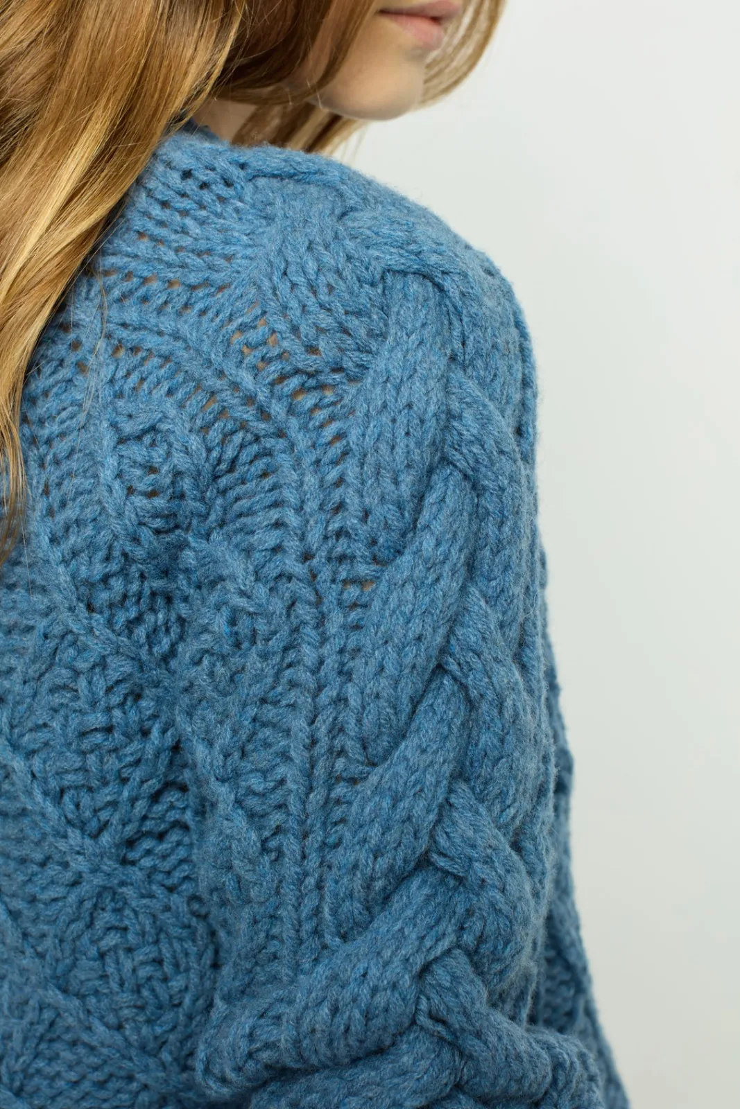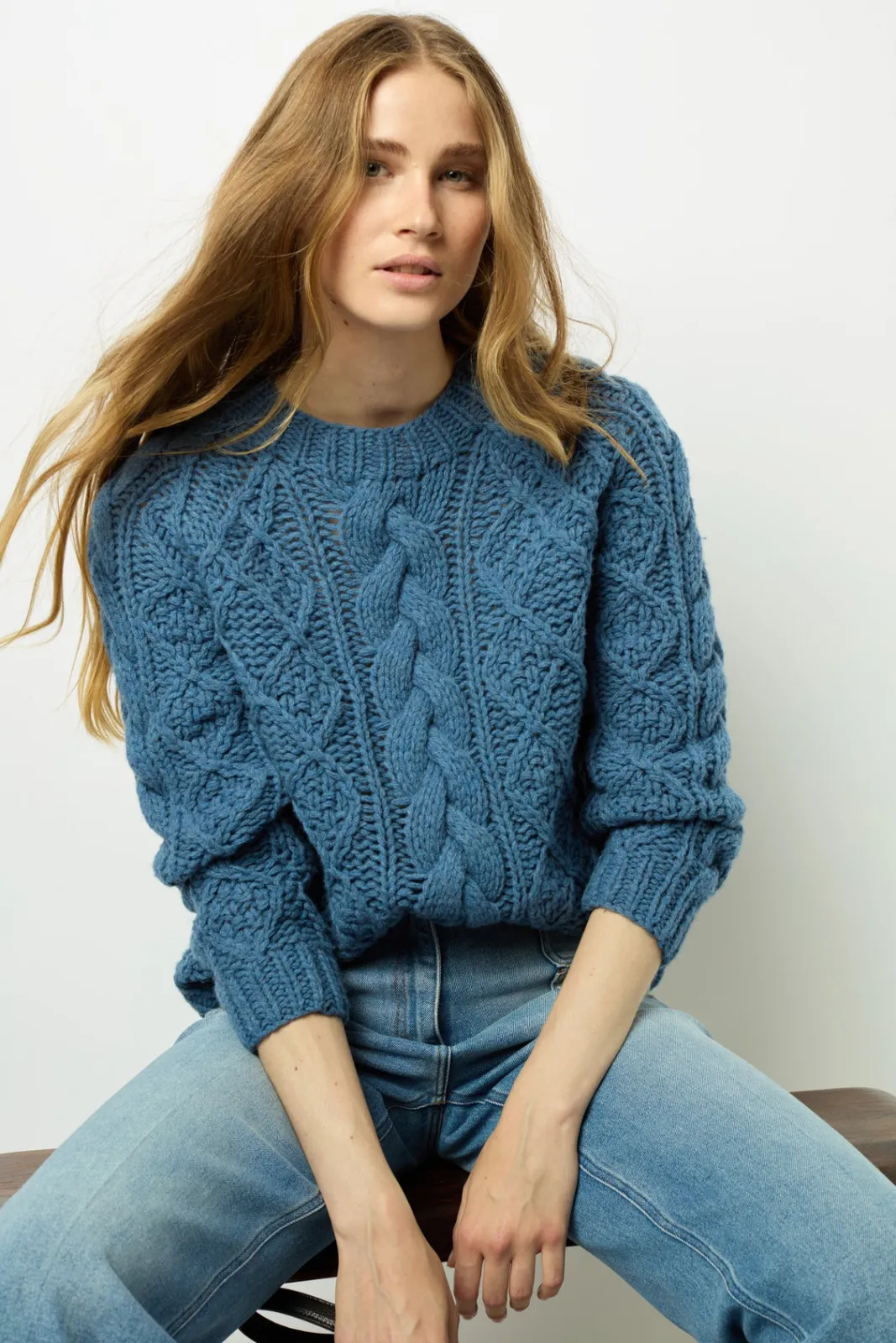 Twisted sweater, chunky in a mid-winter spirit. 100% wool.