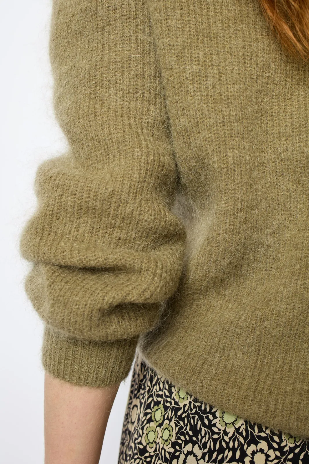 Round neck sweater in a blend with mohair wool for a winter spirit.