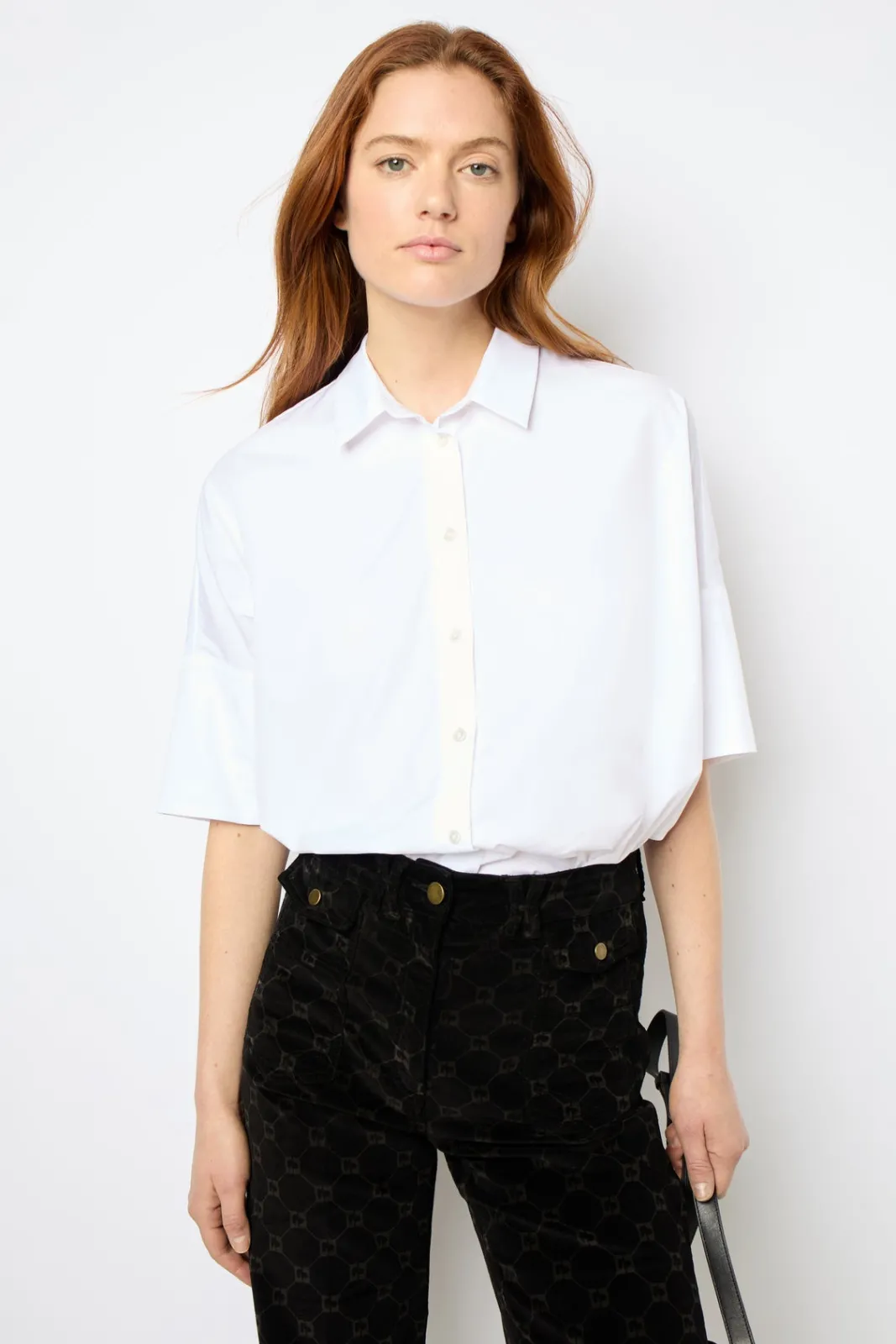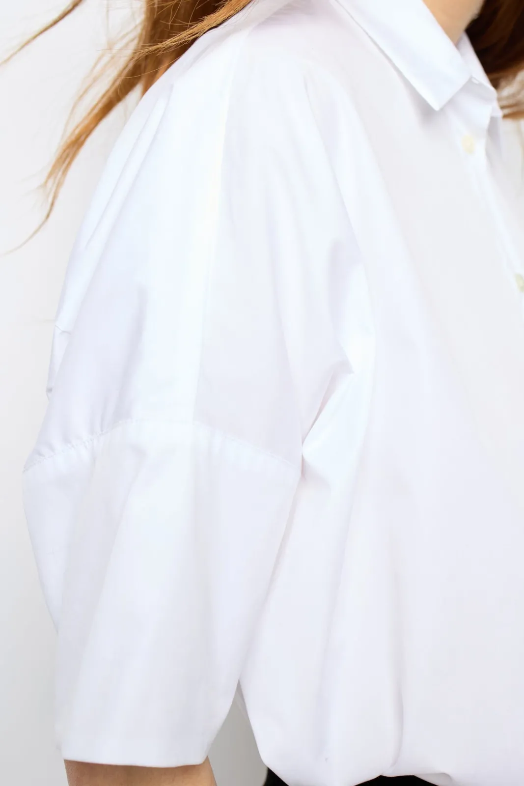 Oversized cotton poplin NARA shirt.-Large-Plain-Shirt collar-Short sleeves with dropped armholes-Seven-button placket-Ro…