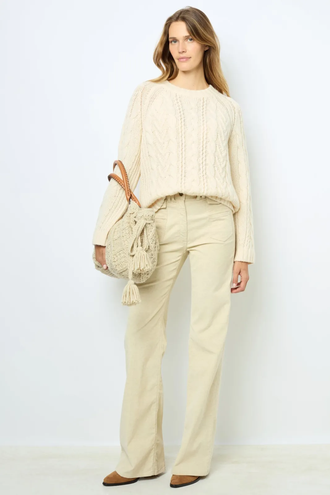 Ecru twisted sweater, chunky in a mid-winter spirit. 100% wool.