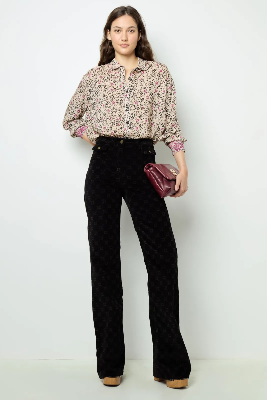Soft shirt with floral print.-Straight cut-Floral pattern-Standard length-Buttoned shirt collar-Long sleeves-Buttoned cu…