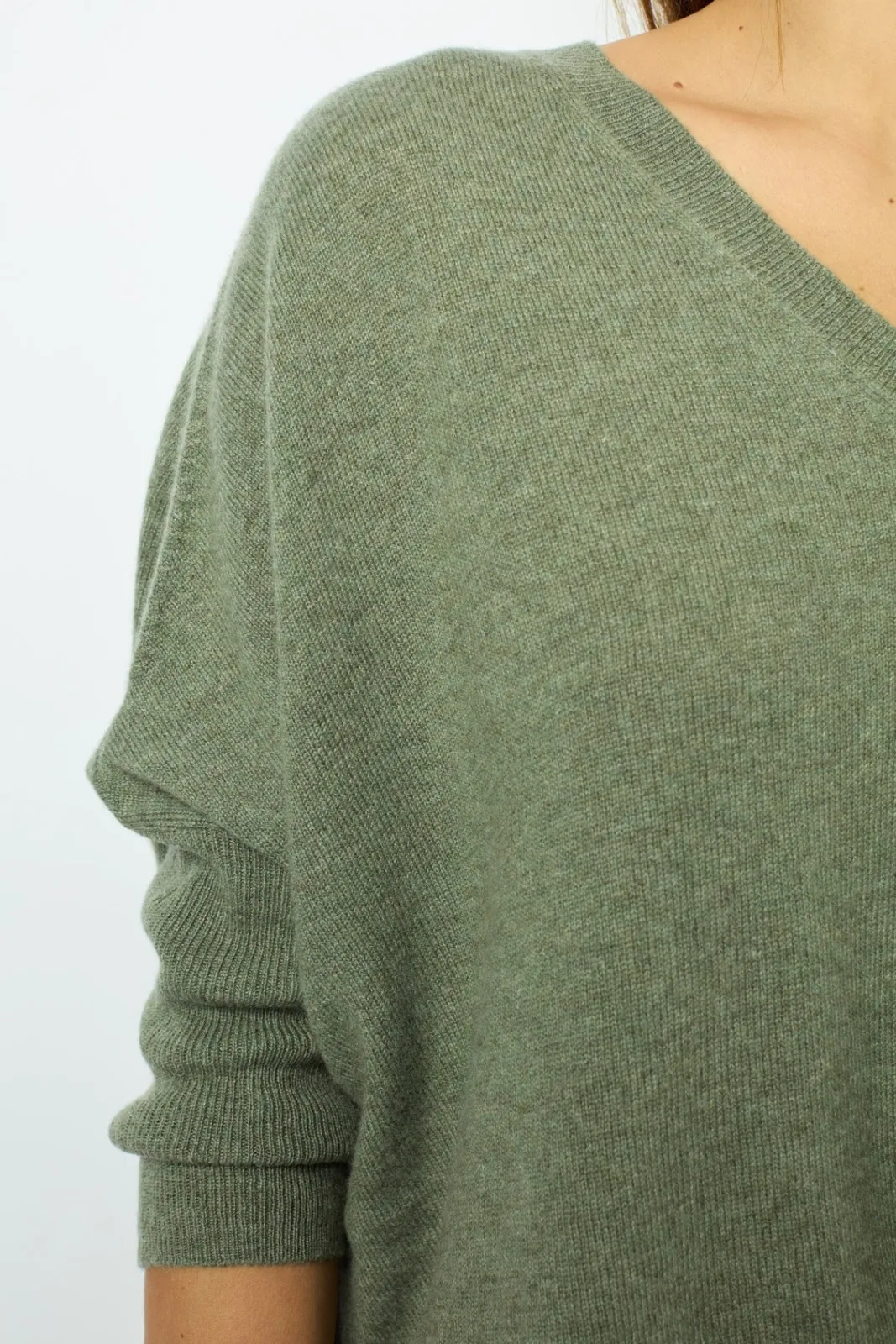 Oversized sweater with a poncho feel, in 100% cashmere for ultimate softness In a very on-trend shade of khaki.