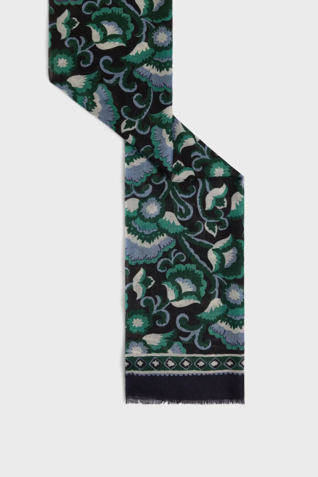 Wool scarf with foliage print.70 x 180cm.-Rectangular-Foliage print-Slightly fringed details