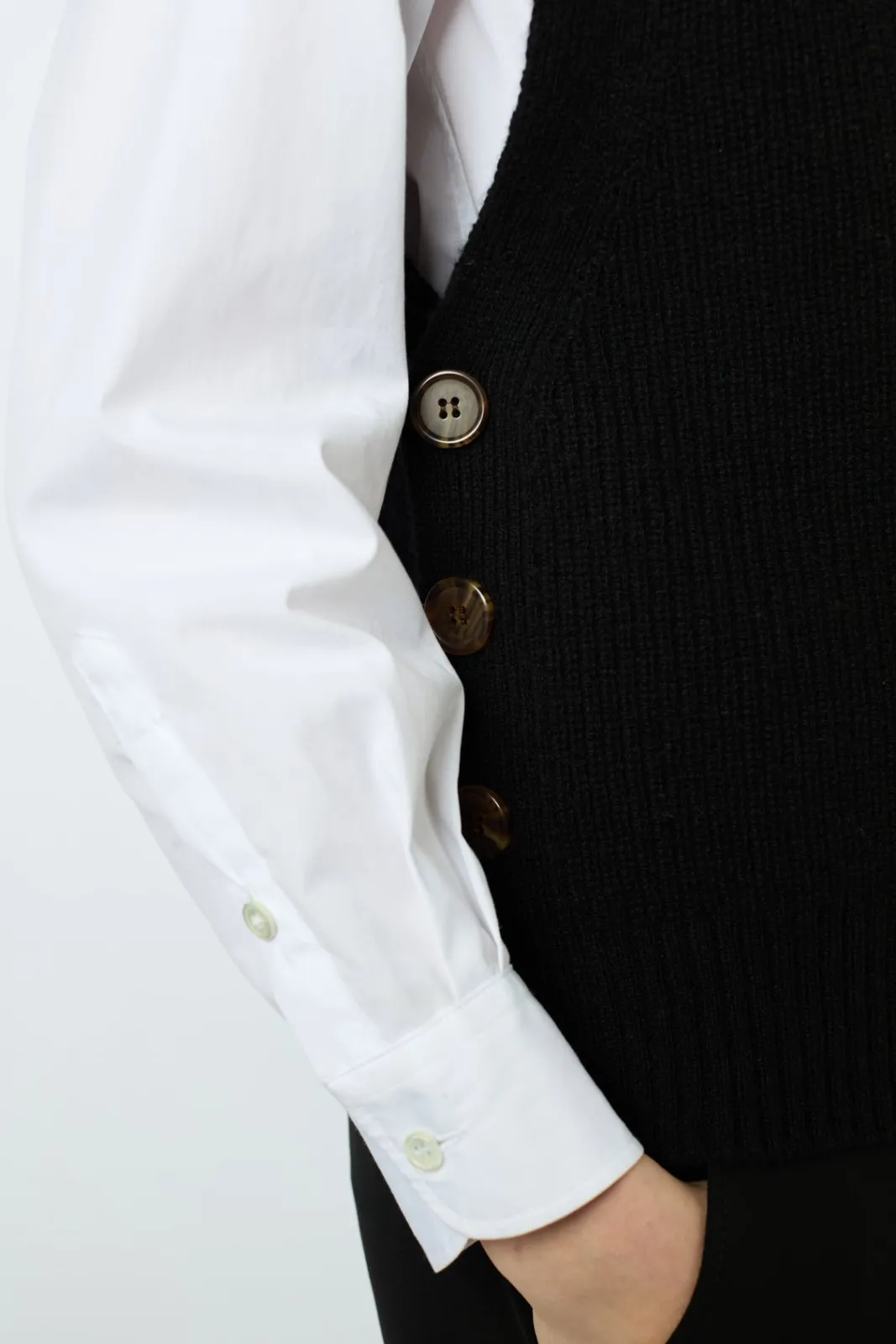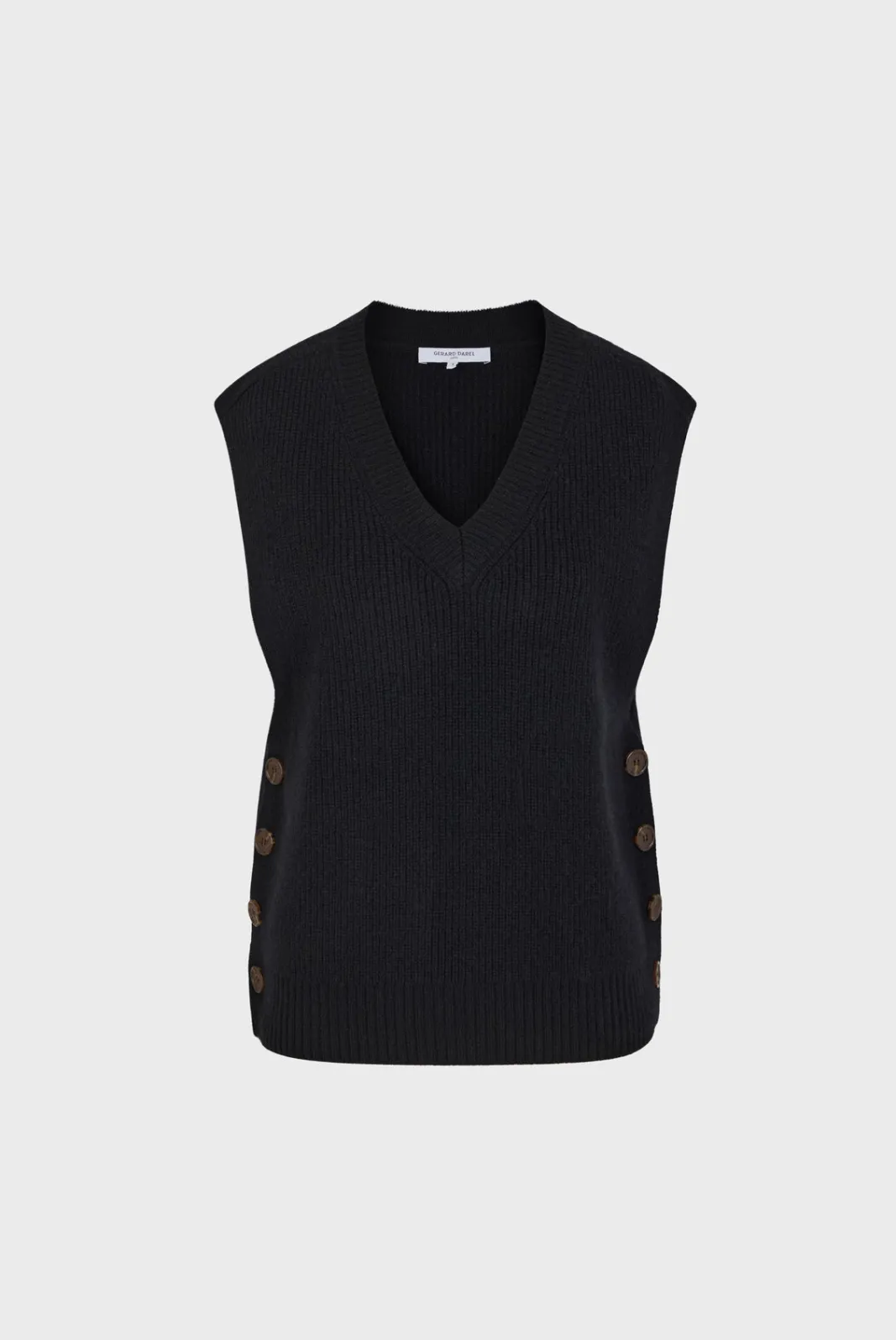 Sleeveless ribbed sweater with V-neck. 100% wool.