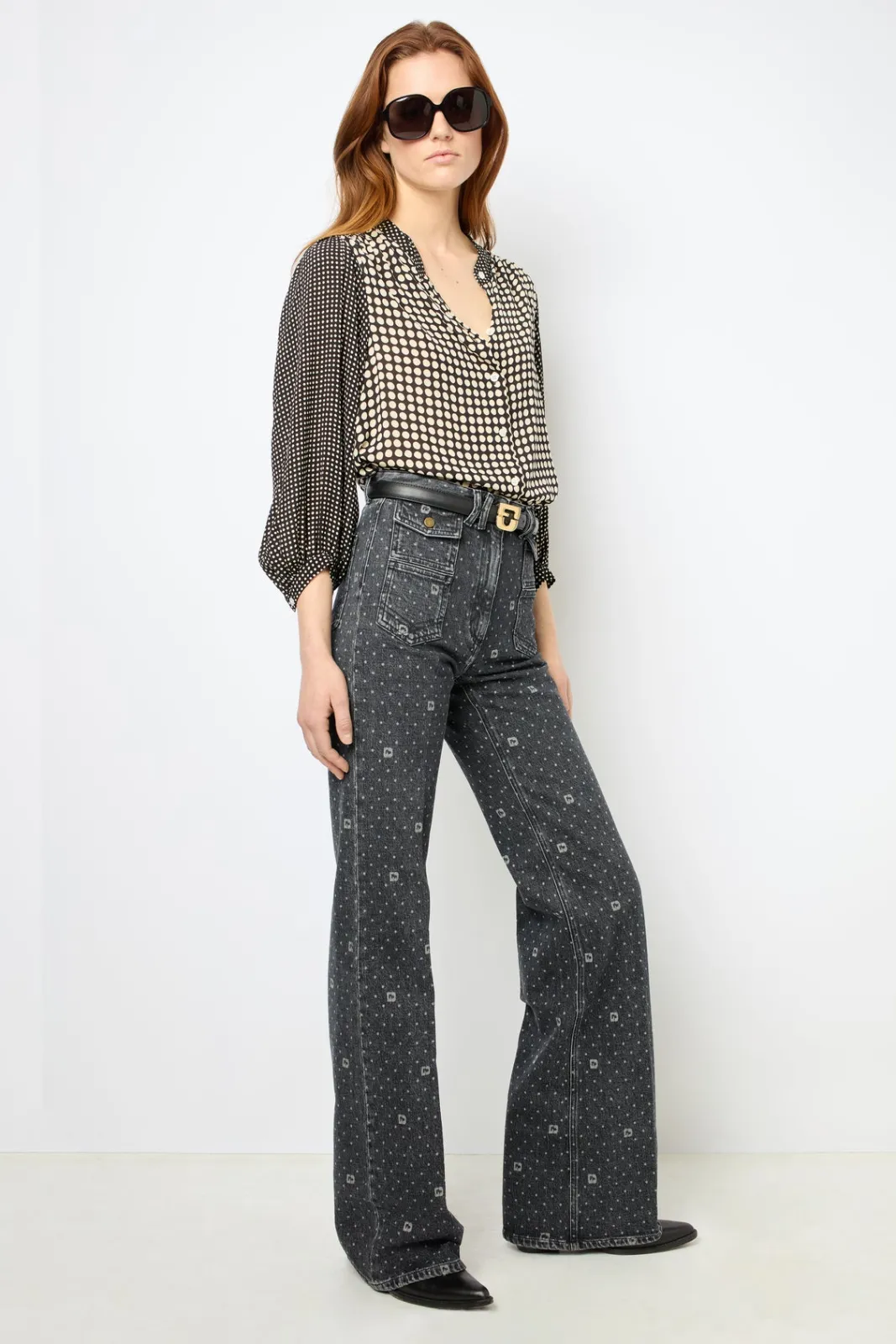 The ANNA jeans, one of Darel’s signature pieces, here available with polka dot print with all-over GD monogram.