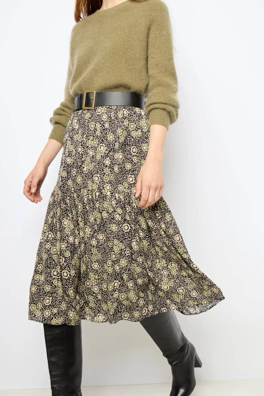 Midi floral skirt with a soft silky touch.