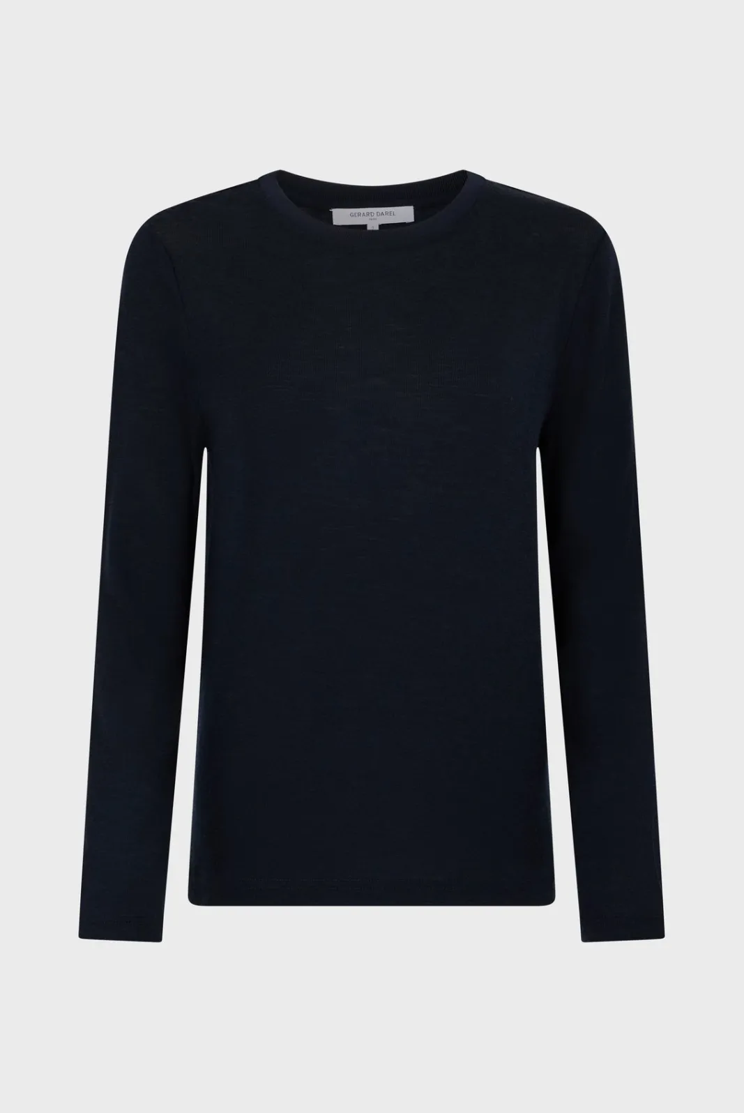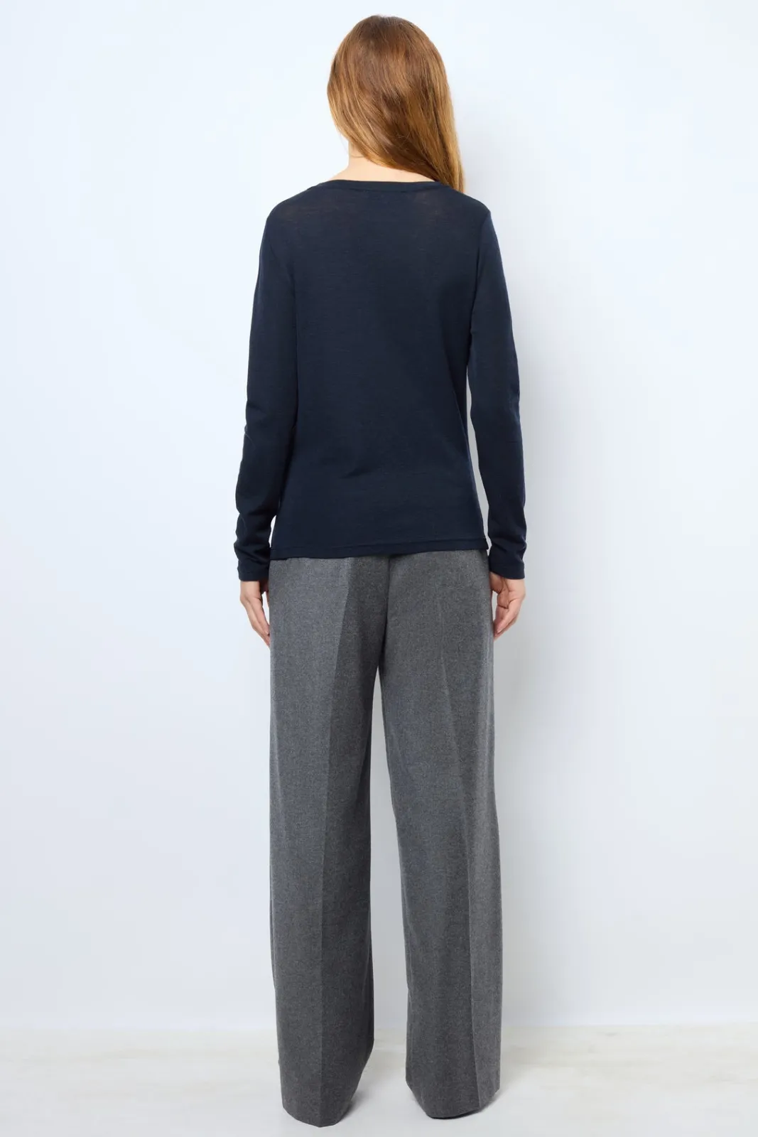 Warm fine wool T-shirt to wear under a sweater or jacket. 100% wool.