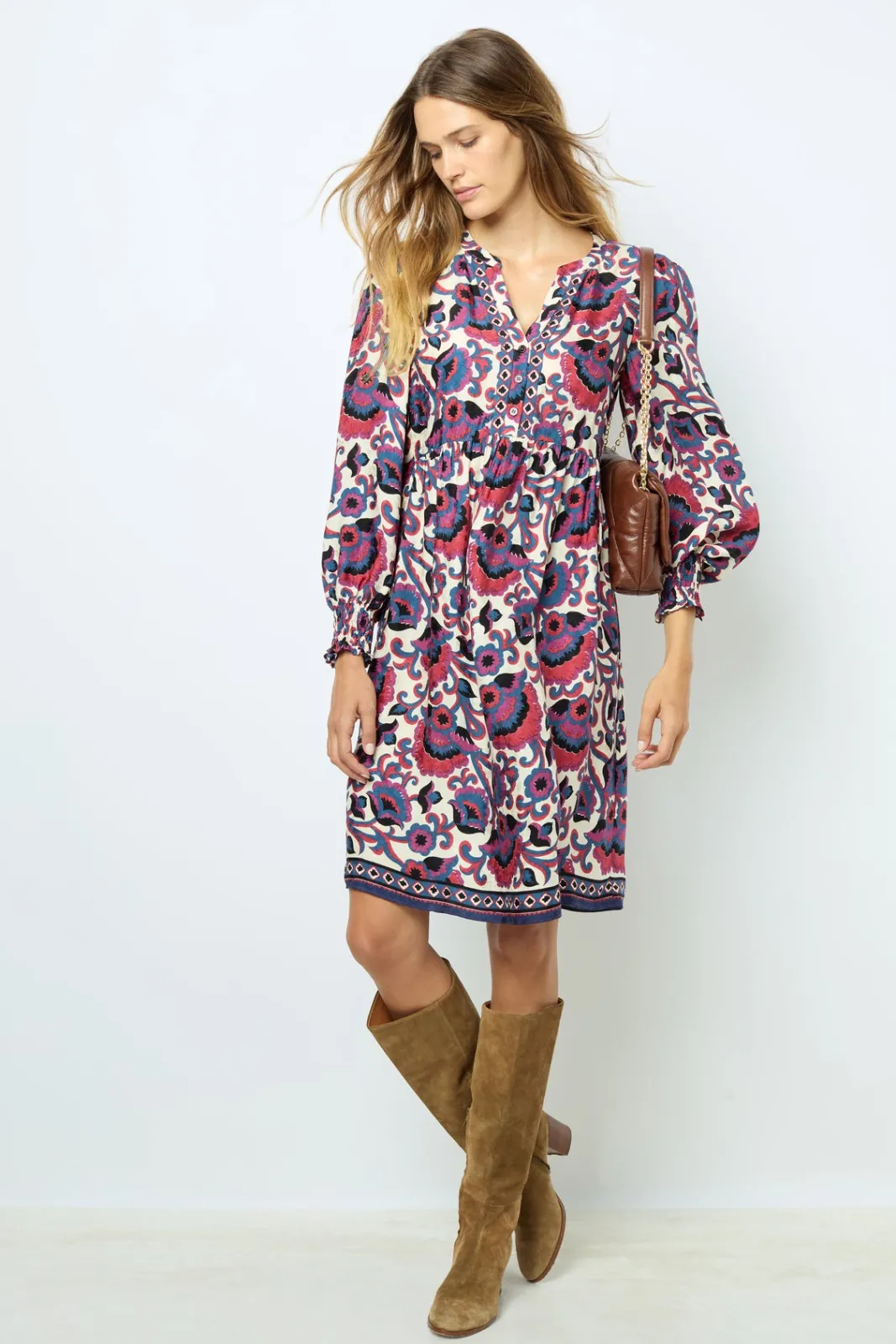 Midi dress in printed jacquard. Flowing with a soft feel.