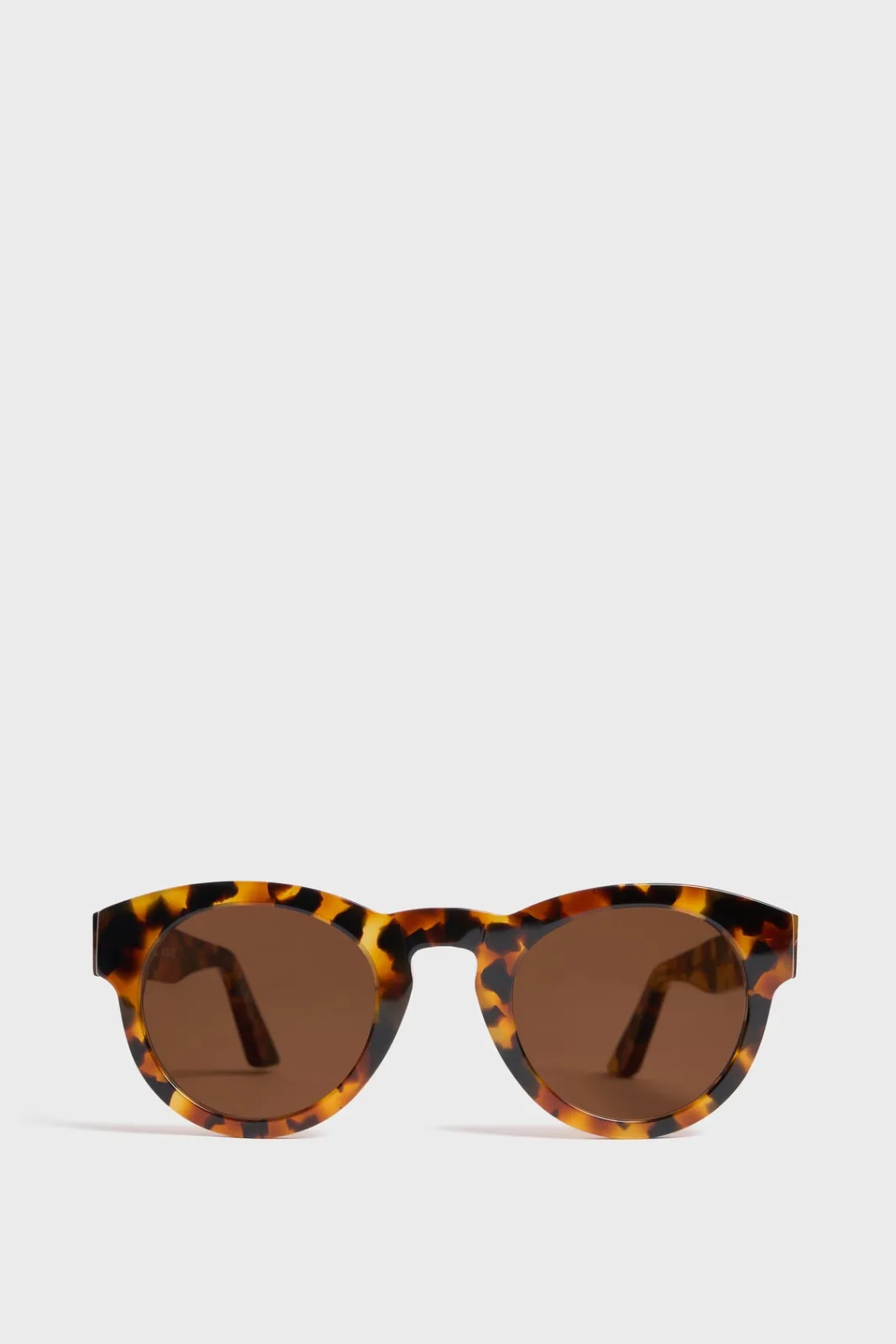 Oval frame sunglasses with a tortoiseshell pattern in a chic style. 100% UV protection.
