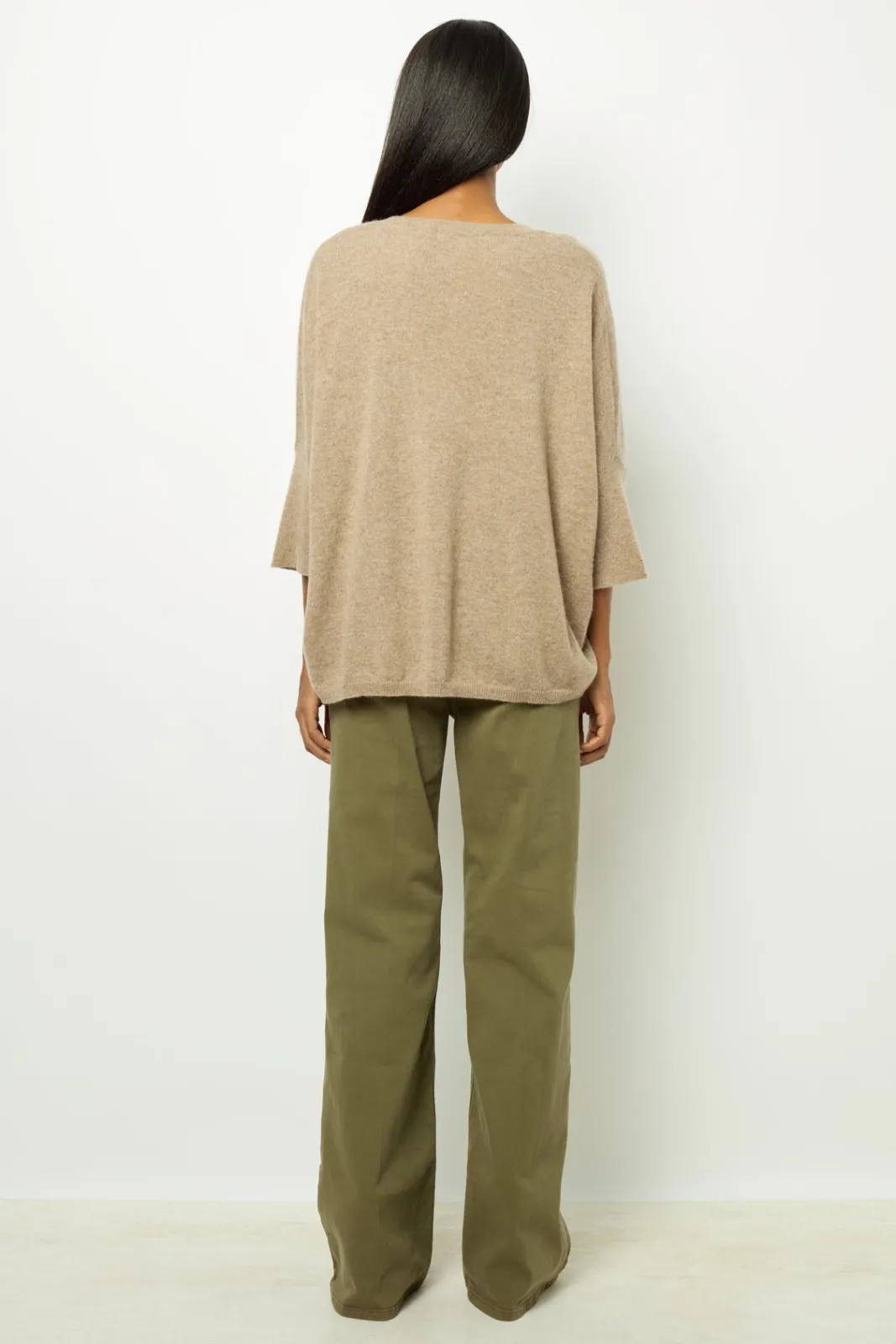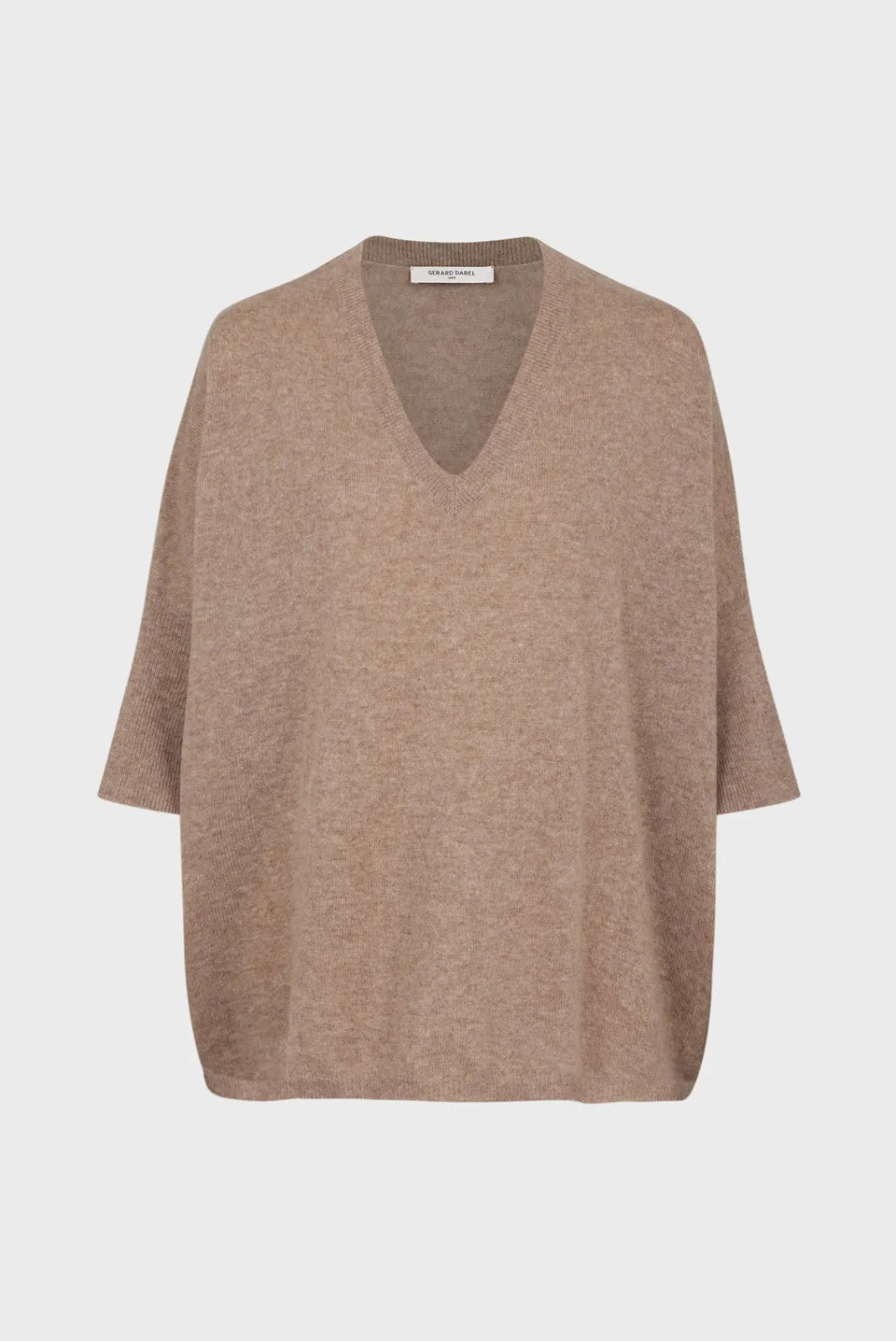 A very soft 100% cashmere sweater with a tunic feel.-Loose fit-Plain fabric-Dropped sleeves-V-neck-Short sleeves-Ribbed …