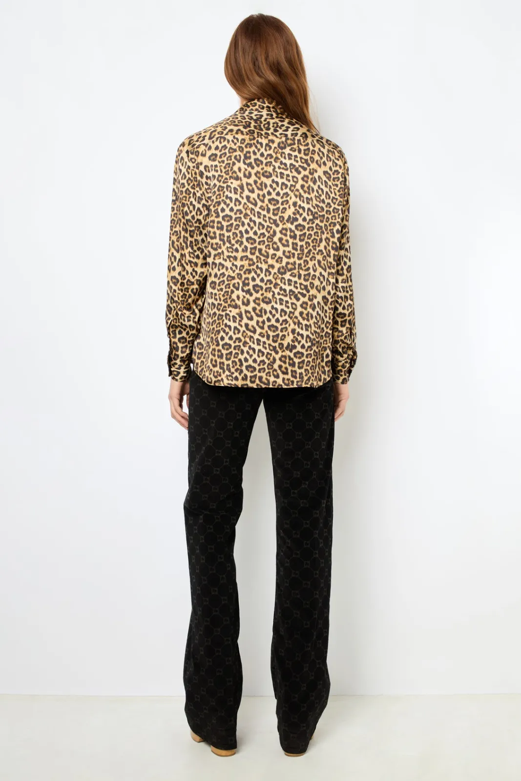 Satin shirt with leopard print.-Straight cut-Leopard print-Classic armhole-Buttoned shirt collar-Long sleeves-Sleeves fa…