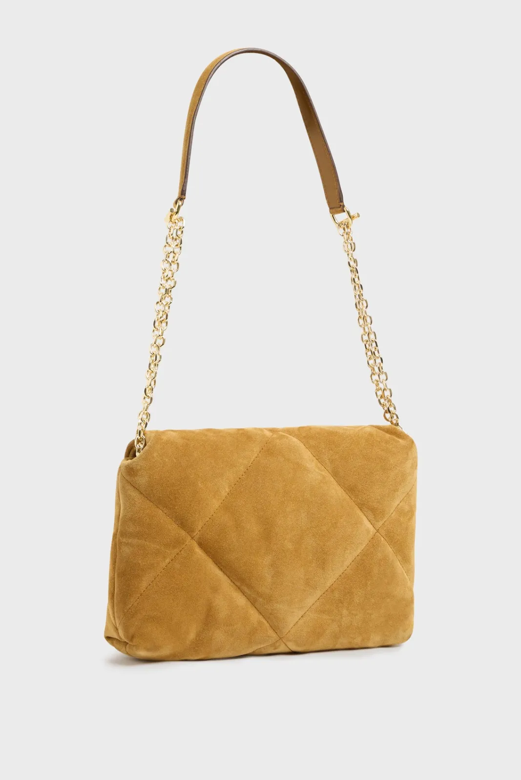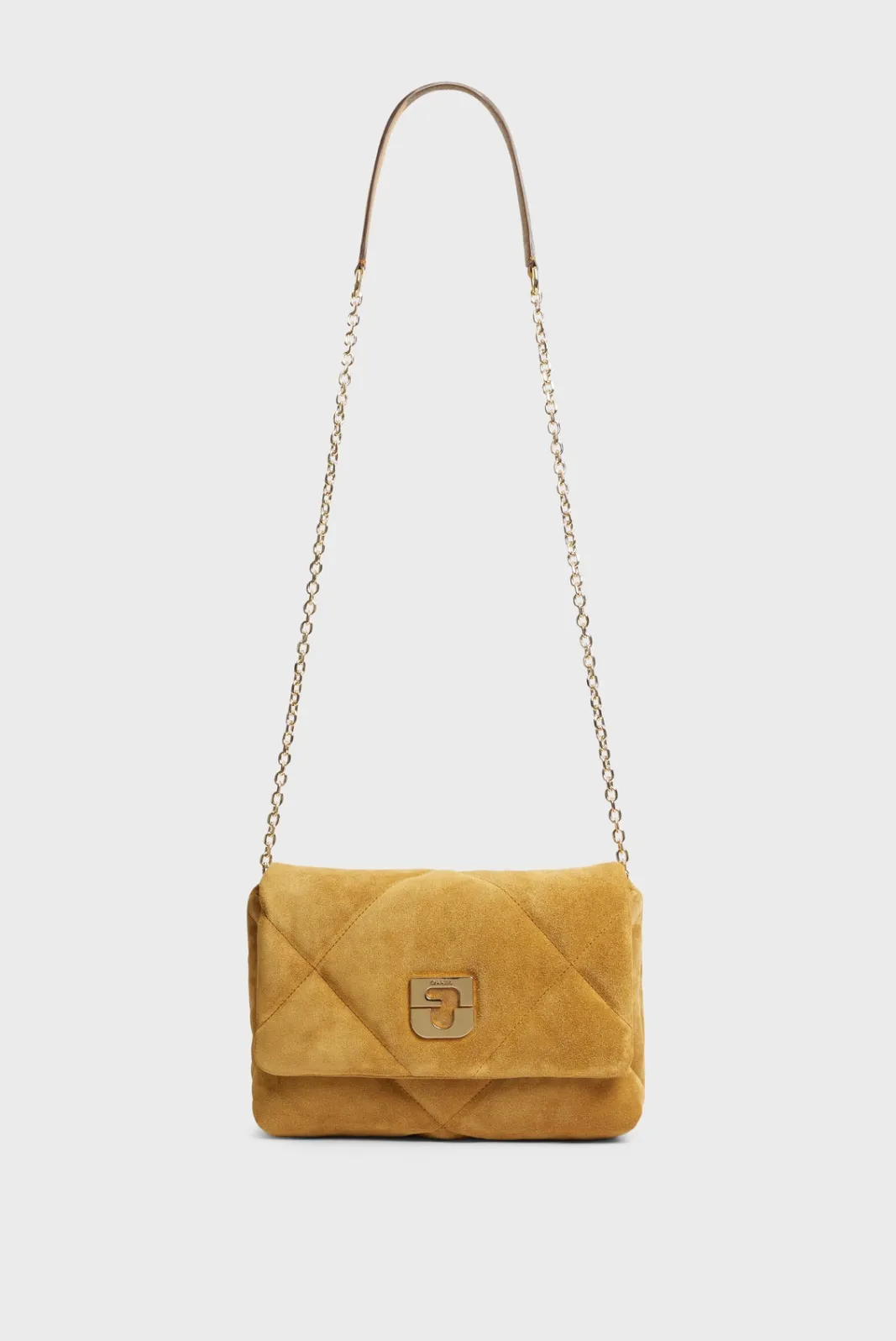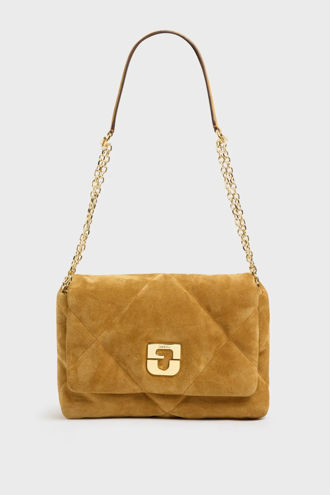 A gem of subtlety in the collection, the Fanny has everything from an icon. Its ideal size and adjustable shoulder strap between leather and chain, offer a comfortable wear, both chic and practical. We find the Gerard Darel signature hidden on the body of the bag. But it is in gold on the clasp on its quilting suede leather that his initials shine on a background of giant diamonds with graphic and sensual lines. A bag thought like cloud of softness in a suede glove, a real piece of designer.