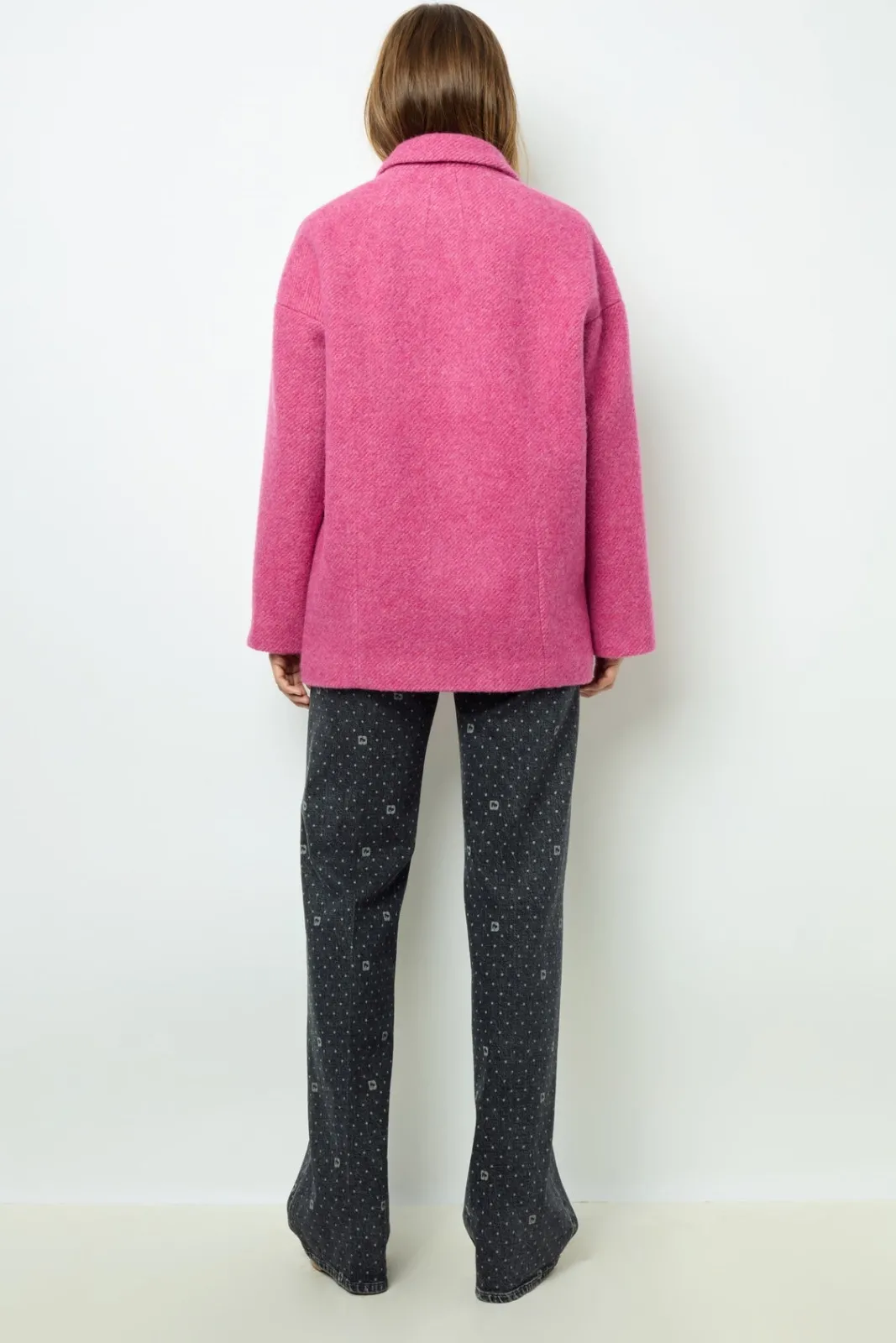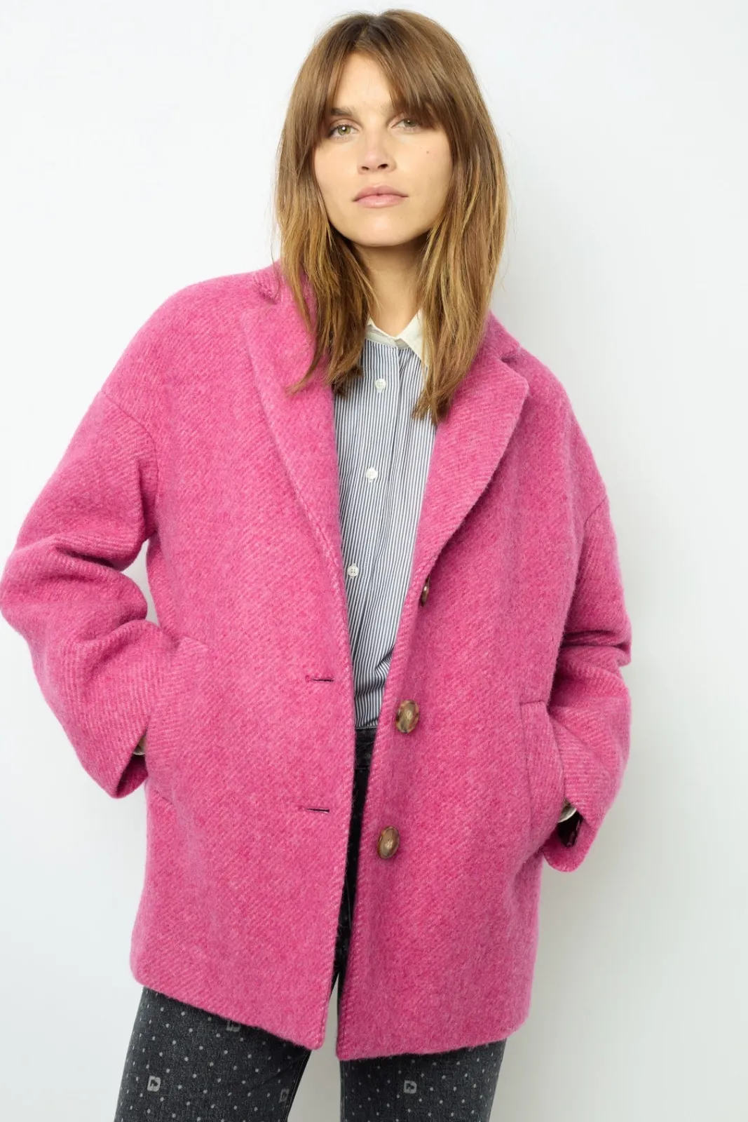 Oversized short coat in 100% virgin wool. Fuchsia to add pzazz to winter outfits.